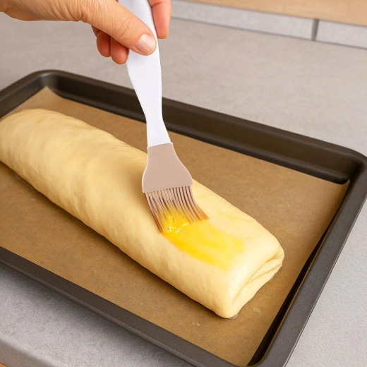 Firele fine și elastice din silicon distribuie uniform uleiul, gălbenușul sau sosurile pe produse de patiserie, carne și forme, fără a deteriora suprafața.