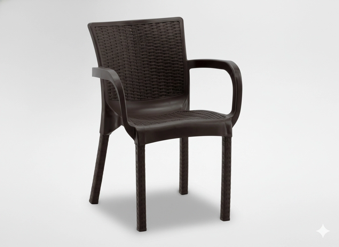 Datorită plasticului rezistent, fotoliul este ușor, stabil și rezistent la ploaie și soare. Cotierele ergonomice sporesc confortul la ședere, fie că te relaxezi pe terasă, pe balcon sau lângă masa de grădină.