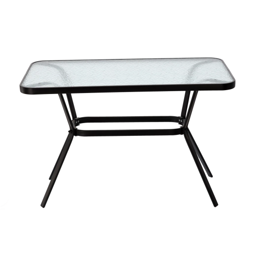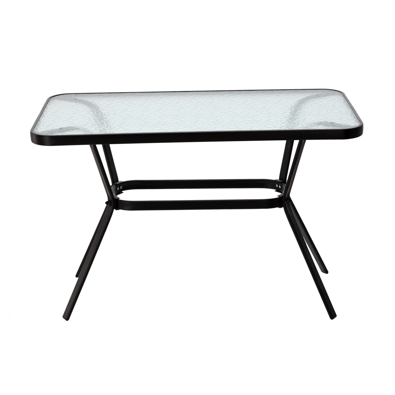 Creați un spațiu confortabil pentru prânzuri în familie și momente plăcute cu prietenii. Această masă de grădină dreptunghiulară oferă o construcție solidă și stabilă cu finisaj negru cu vopsea pulbere și un blat elegant din sticlă, care adaugă lejeritate și stil oricărui exterior.