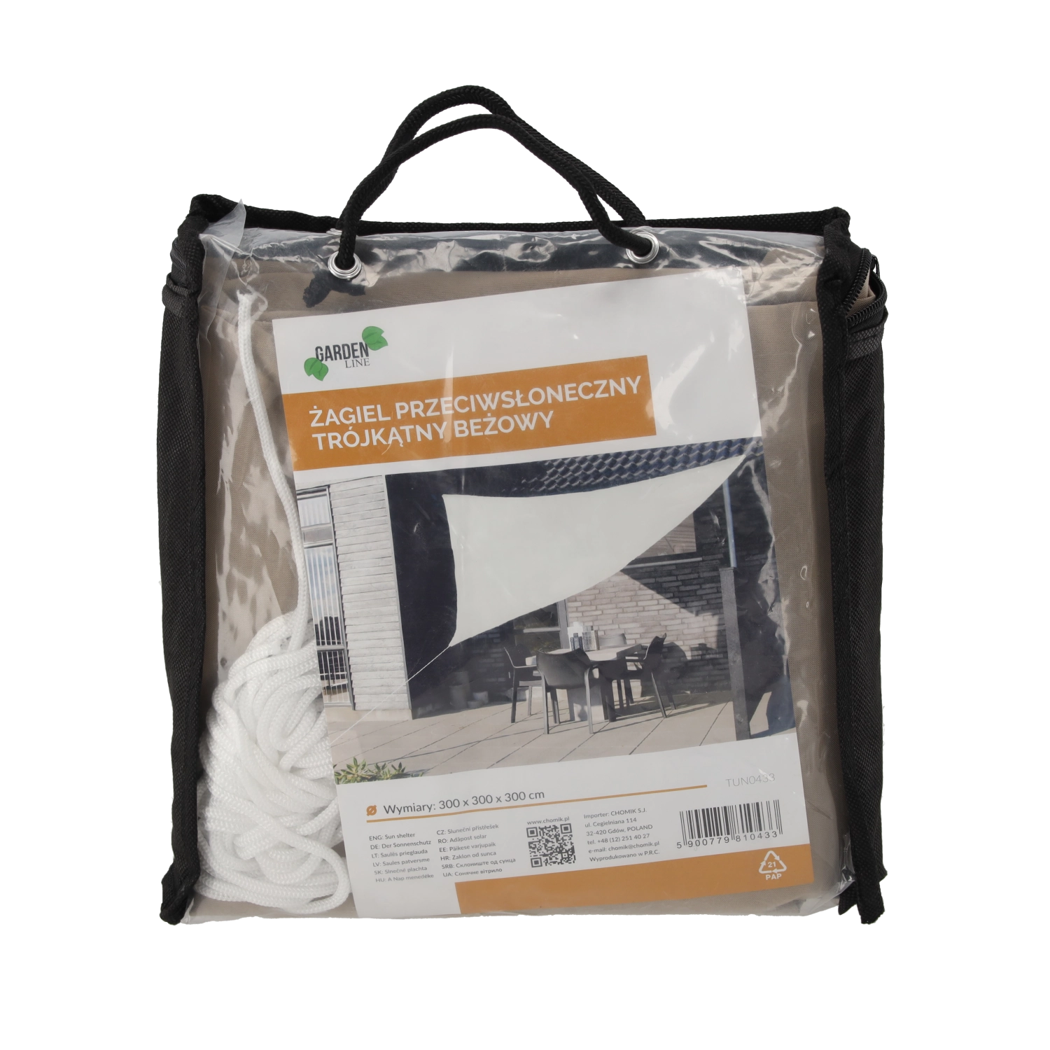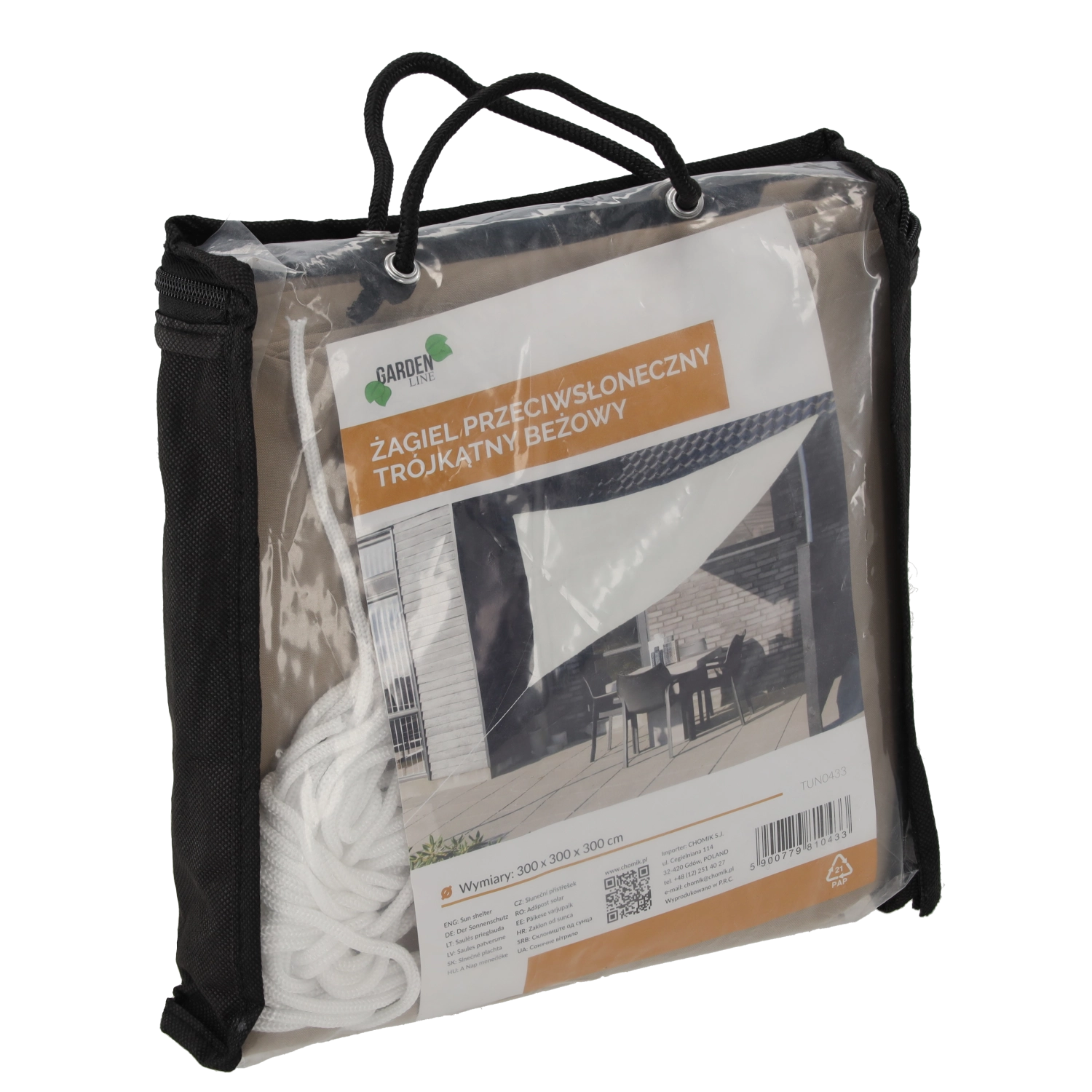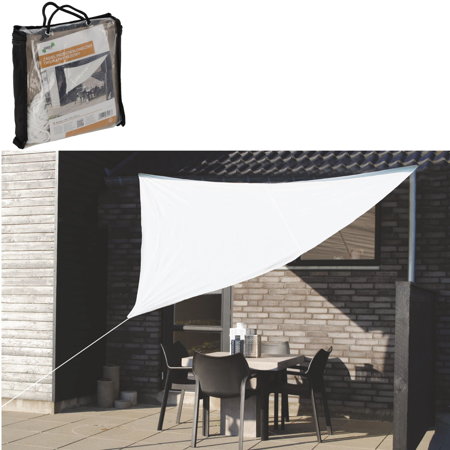 Pachetul include 3 corzi de fixare. Prelata se întinde și se adaptează cu ușurință spațiului pentru a crea imediat umbră.