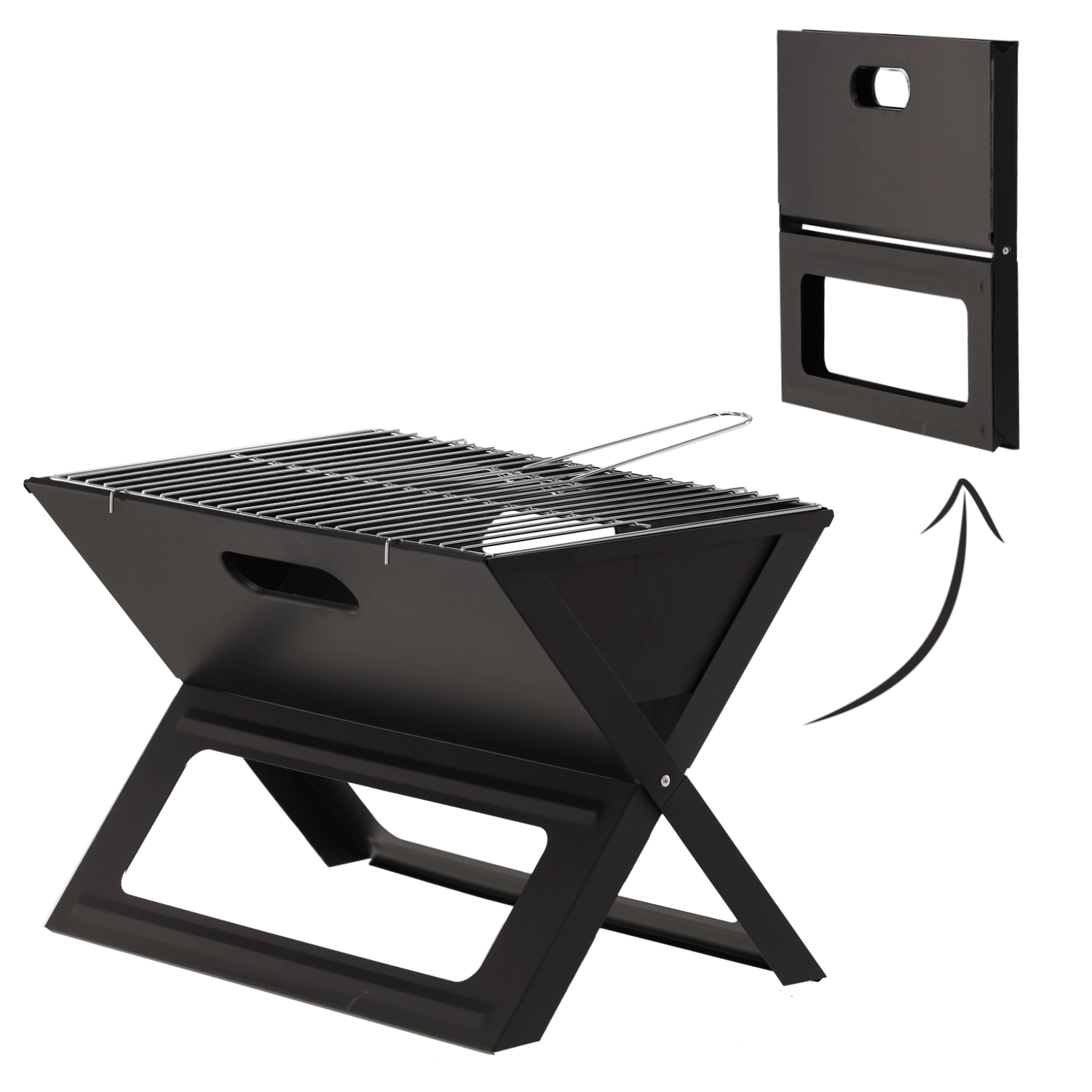 Grătarul se pliază plat în câteva secunde. Încape cu ușurință în portbagaj și este gata pentru orice excursie, picnic sau festival.