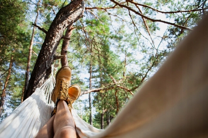 Barele distanțiere mențin suprafața de întins deschisă, astfel încât te poți așeza ușor în hamac, oferind o poziție stabilă și comodă pentru citit și relaxare.