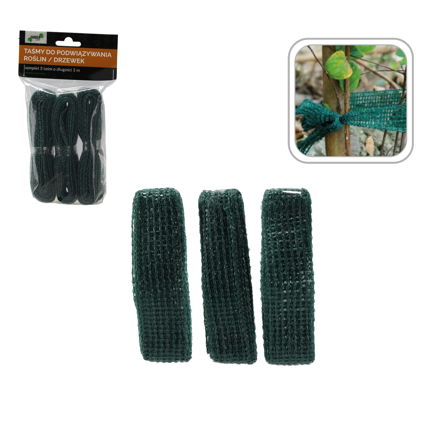 Benzile fixează ușor planta de suport, iar datorită plasei respirabile previn deteriorarea scoarței și a tulpinilor. Ideale pentru pomi tineri și arbuști.