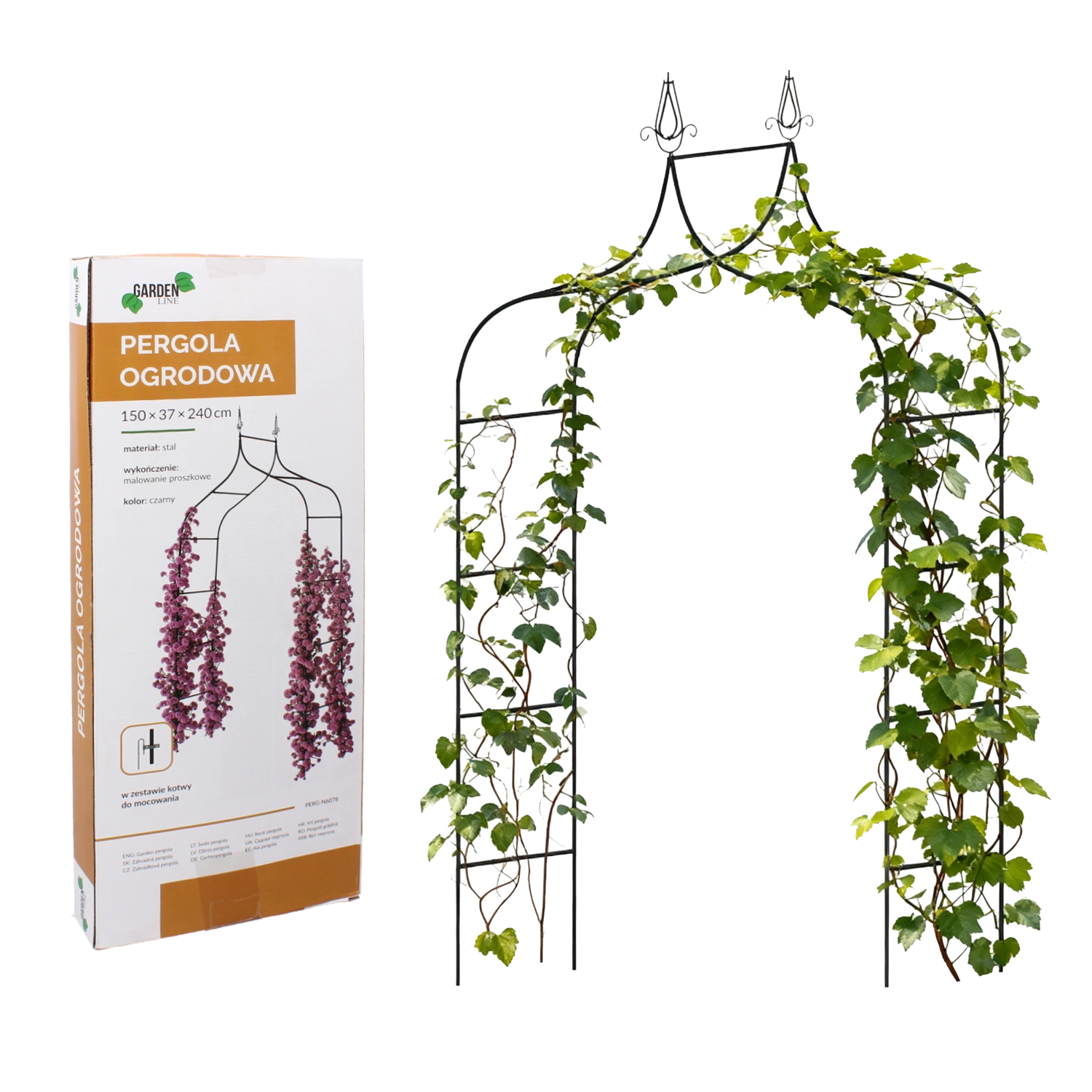Oțel acoperit cu pulbere în culoare neagră universală rezistă intemperiilor și se potrivește atât grădinilor clasice, cât și celor moderne. Pachetul include ancore pentru fixare sigură, care asigură stabilitate chiar și pe vânt.