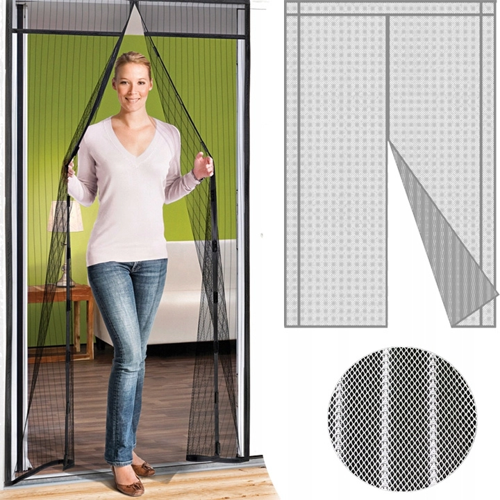Instalarea este rapidă și fără găurire – se fixează simplu în jurul ramei ușii. Plasa poate fi tunsă pentru o potrivire perfectă la lățimi de 80/90/100 cm și înălțimi de 200/210 cm. Închiderea magnetică este asigurată pe toată lungimea de panouri și magneți auxiliari, astfel încât plasa rămâne fiabil închisă chiar și la treceri frecvente ale copiilor sau animalelor de companie.