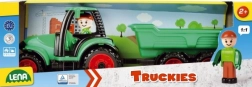 Tractorul cu remorcă din gama Truckies îi va încânta pe micii constructori și fermieri. Datorită construcției rezistente și controlului complet mecanic, copiii se bucură de o joacă autentică fără baterii – ridicarea benei, atașarea și detașarea remorcii, precum și conducerea cu figurina șofer.
