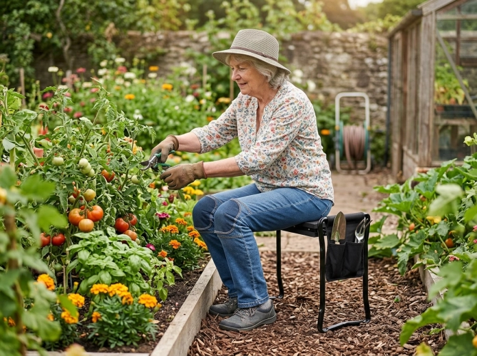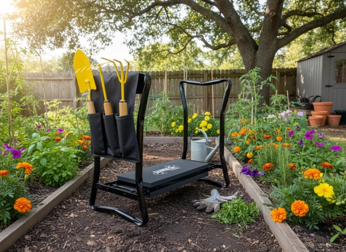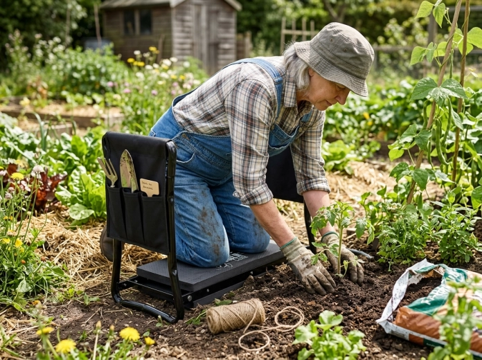 Prin simpla întoarcere, în câteva secunde comutați între o genunchieră moale și un taburet stabil. Ideal pentru plantare, plivit și relaxare.