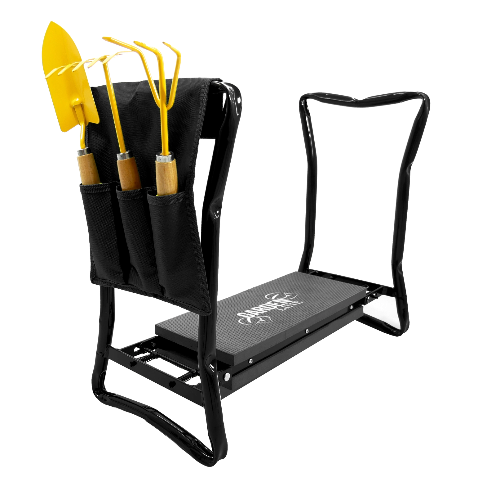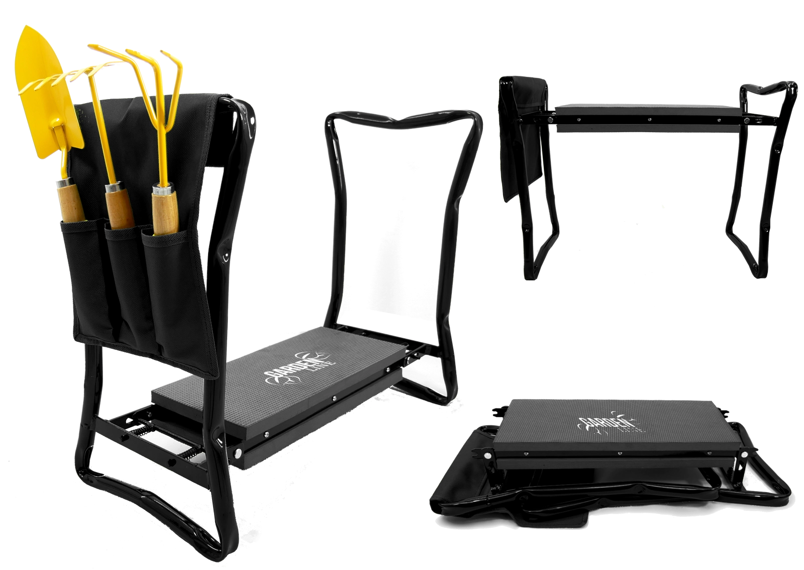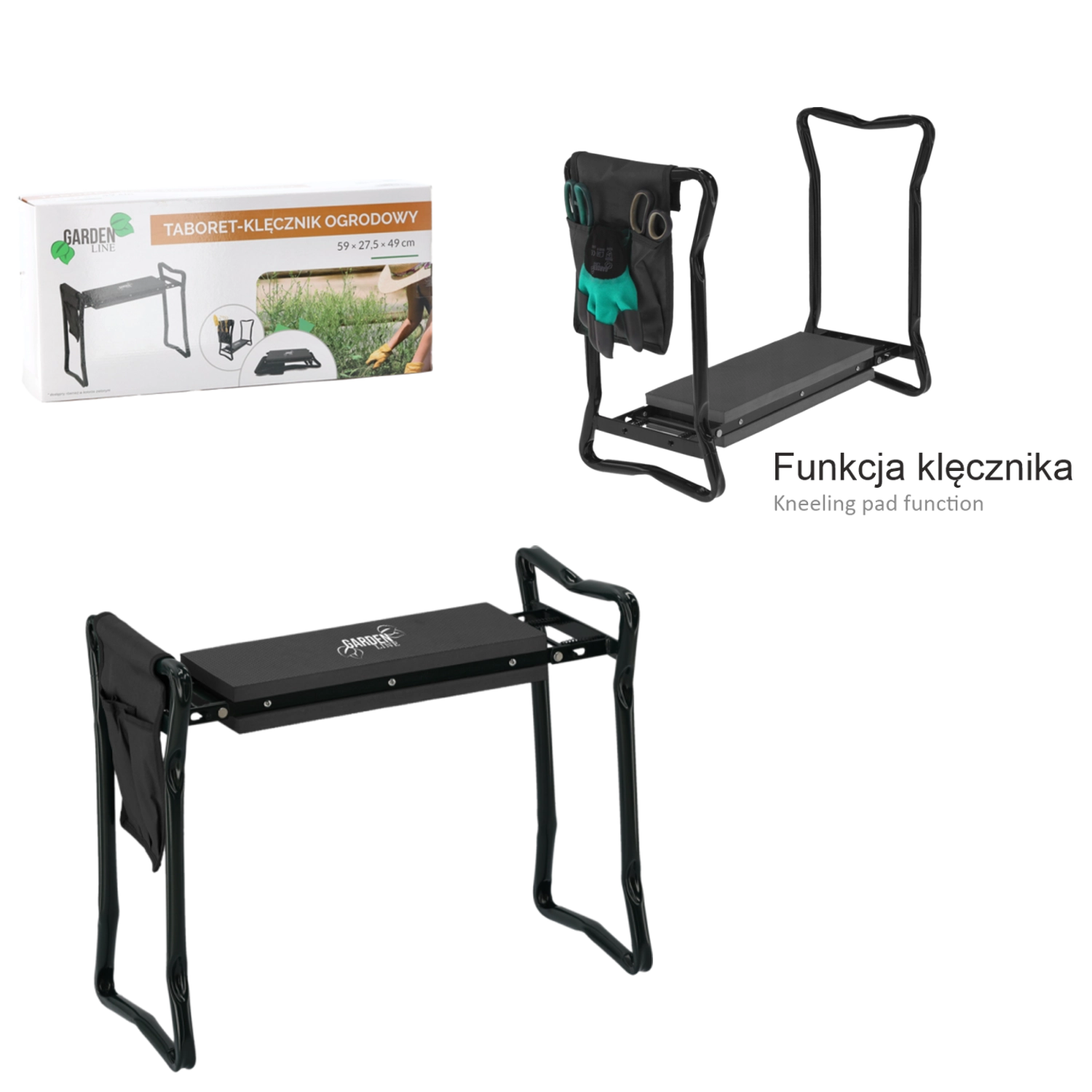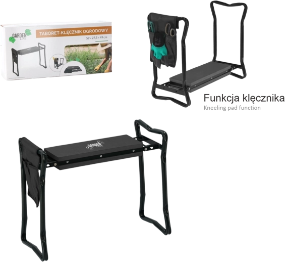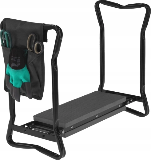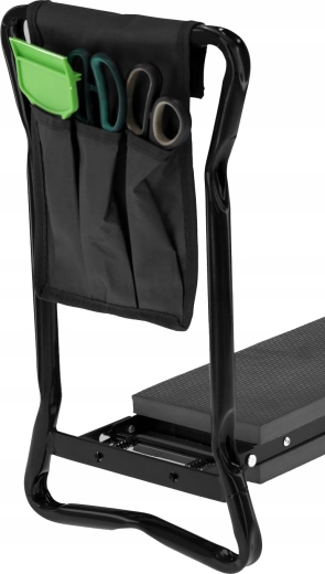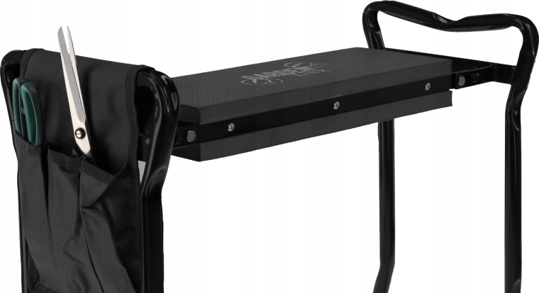 Buzunarul textil lateral păstrează foarfeca, grebla mică sau mănușile mereu la îndemână. Datorită picioarelor pliabile, produsul se depozitează ușor în garaj sau în mașină și îl puteți lua cu dvs. în grădină, la picnic sau la pescuit. Materialele de calitate (fier, spumă EVA, țesătură Oxford) asigură durată lungă de viață și rezistență la utilizare zilnică.