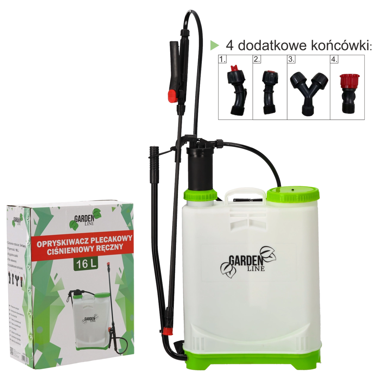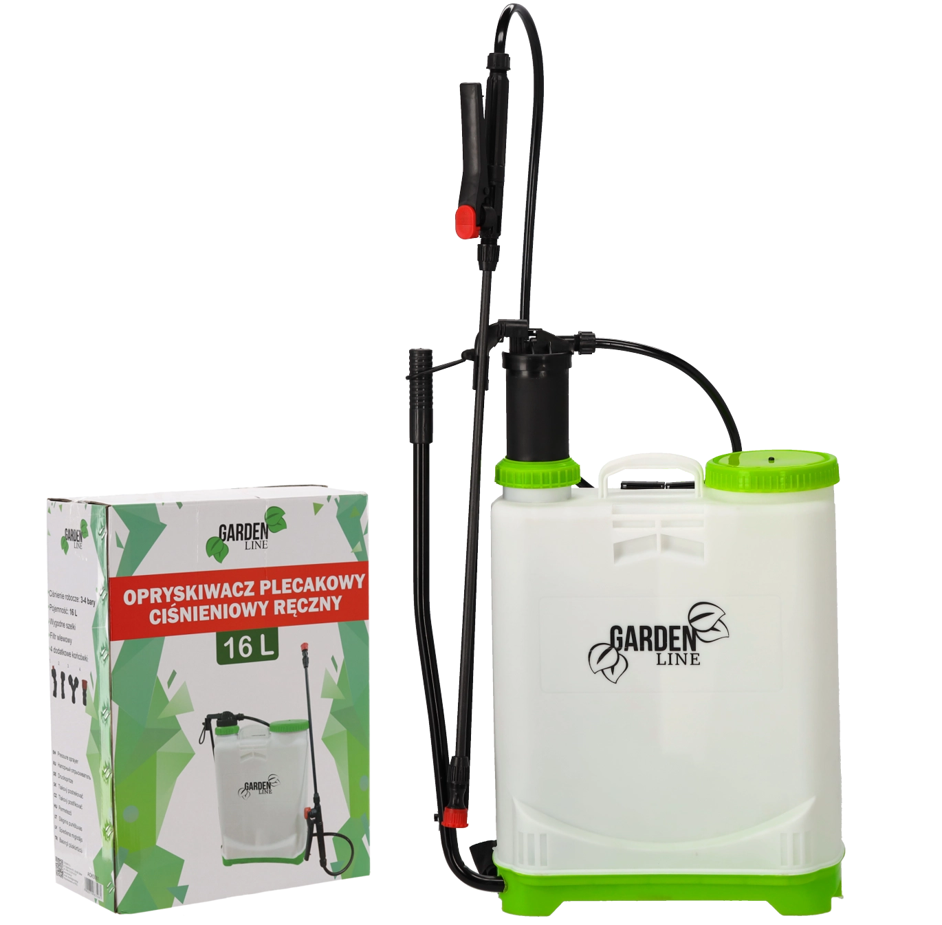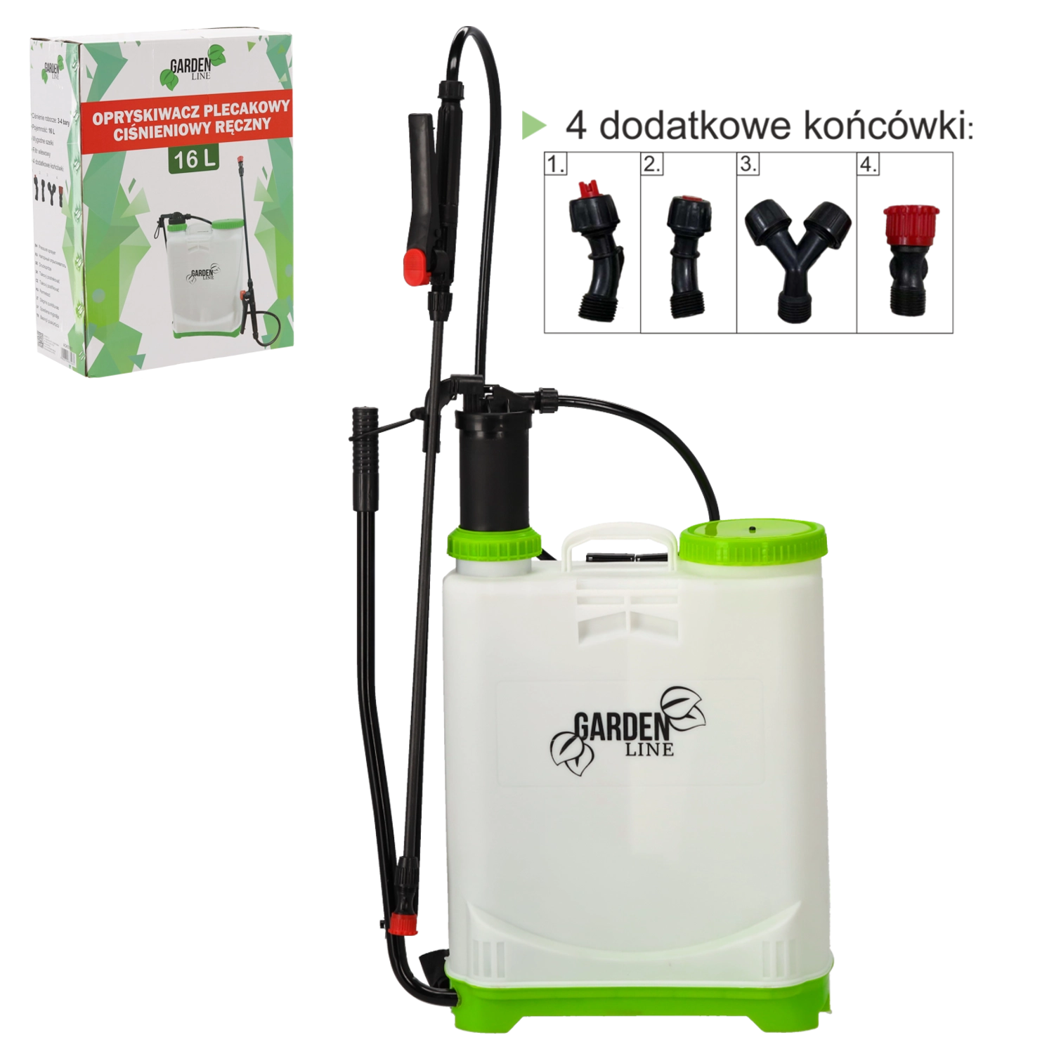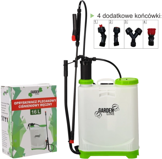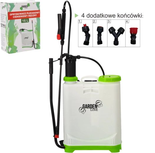 Pulverizator tip rucsac, practic, cu volum de 16 l pentru îngrijirea grădinii, cu presiune de lucru 3–4 bari, chingi ergonomice și duză reglabilă. Include 4 capete interschimbabile pentru diferite tipuri de pulverizare și filtru de admisie pentru umplere curată fără impurități.