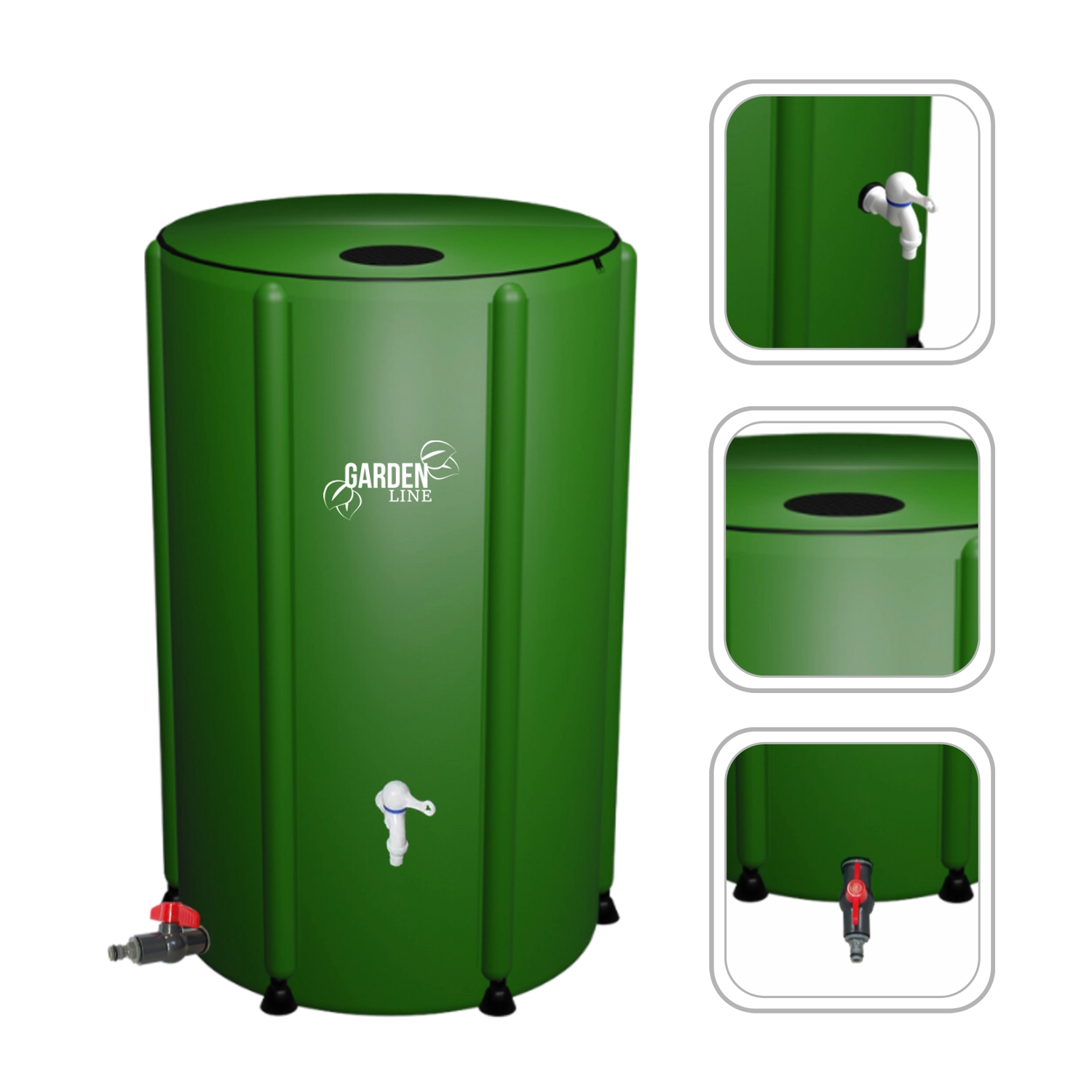 Capacitatea de 500 litri asigură suficientă apă de ploaie pentru udarea regulată a straturilor, gazonului și ghivecelor fără a încărca rețeaua de apă.