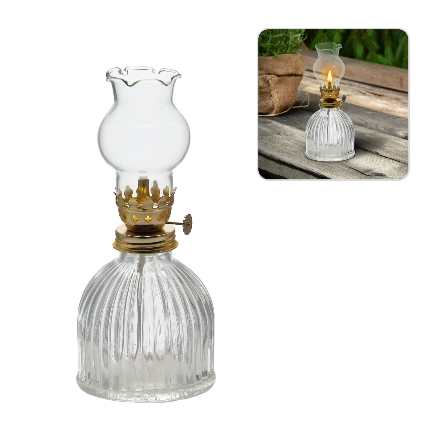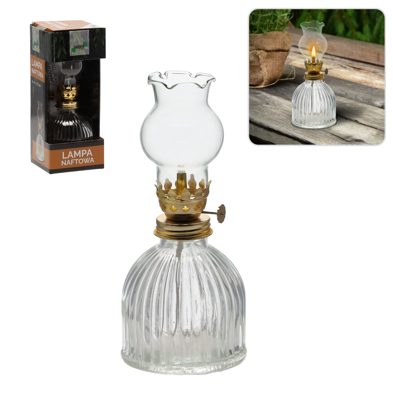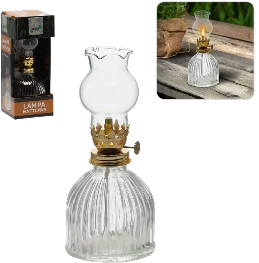Această lampă elegantă cu petrol, în design clasic, va deveni podoaba oricărei încăperi. Corpul din sticlă și fitilul din bumbac creează o flacără stabilă, plăcut de caldă, care induce o atmosferă primitoare atât acasă, cât și în aer liber. Este ideală pentru momente de relaxare, seri romantice sau ca accesoriu decorativ cu utilitate practică.