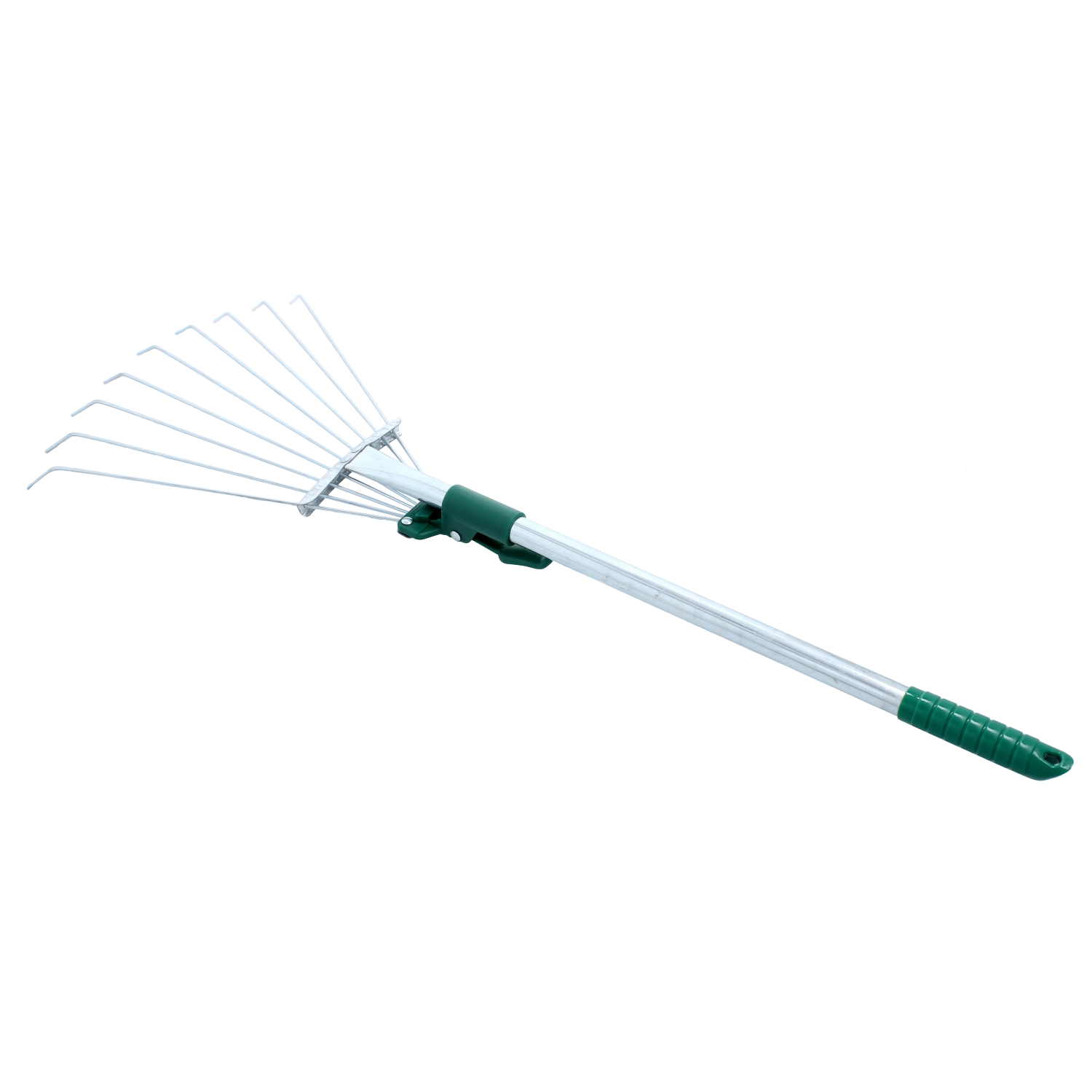 Greblă de grădină practică și ușoară, cu coadă telescopică și lățime de lucru reglabilă, pentru curățarea ușoară a frunzelor, ierbii și a micilor deșeuri din grădină. Datorită reglării lungimii 54–73 cm și a capului tip evantai, adaptați unealta atât spațiului, cât și tipului de lucrare. Dimensiunile compacte, greutatea redusă și mânerul ergonomic asigură utilizare confortabilă chiar și pe suprafețe mici, terase și printre straturi.