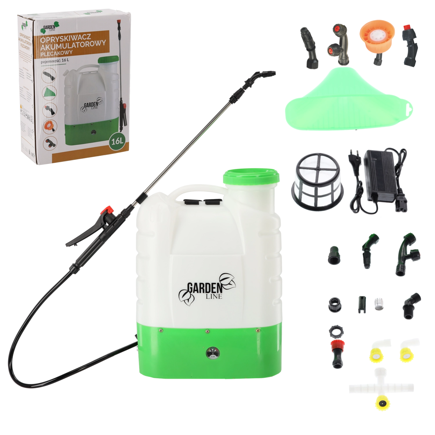 Pulverizator cu acumulator tip rucsac, cu rezervor de 16 l, pentru îngrijirea confortabilă și precisă a grădinilor, livezilor și parcurilor. Oferă autonomie mare, purare ergonomică și reglare lină a presiunii pentru o pulverizare uniformă. Gura de umplere mare cu sită, mai multe duze interschimbabile și operare ușoară îl fac un ajutor de încredere pentru aplicarea îngrășămintelor, pesticidelor și a fertilizării foliare.