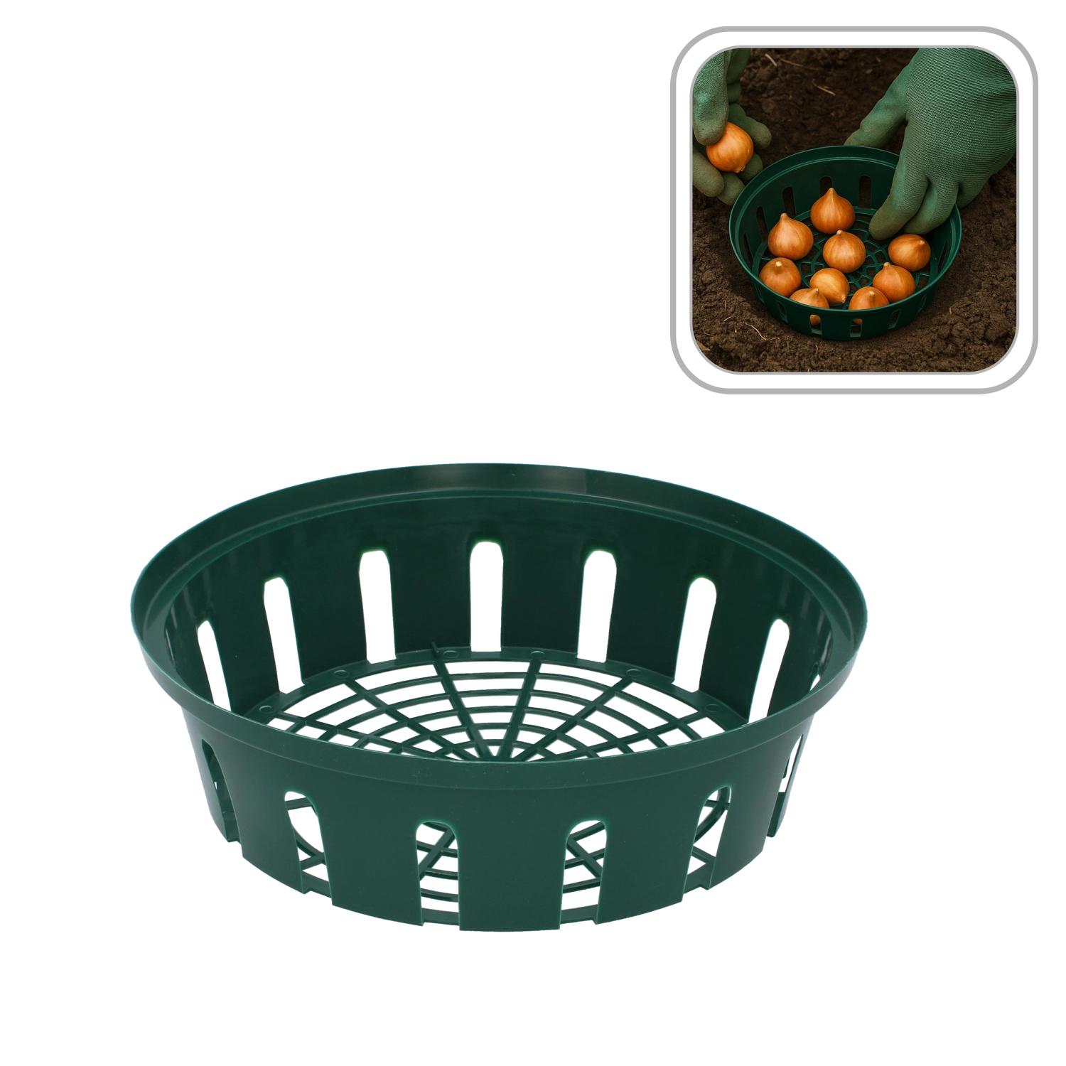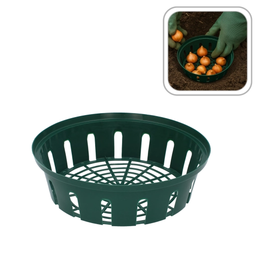 Transformați plantarea bulbilor într-o activitate rapidă și organizată. Acest coș protejează bulbii de șoareci, popândăi și cârtițe, facilitează dispunerea precisă și, după înflorire, permite scoaterea comodă a bulbilor împreună cu substratul. Perforațiile asigură fluxul optim de aer și evacuarea surplusului de apă, ceea ce susține creșterea sănătoasă a plantelor.
