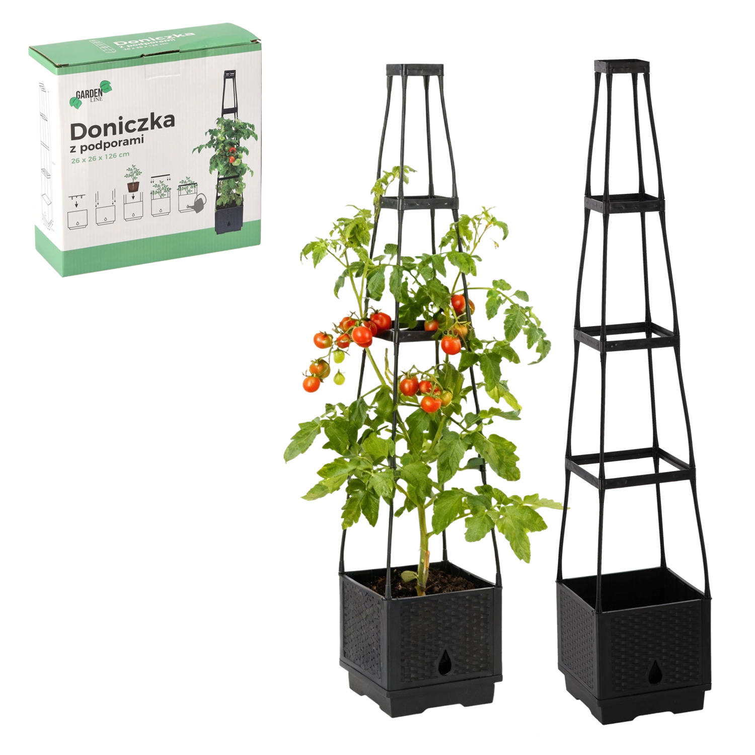 Acest ghiveci cu suporți este o alegere excelentă pentru plante cățărătoare și agățătoare, precum fasole, mazăre, plante ornamentale cățărătoare sau roșii. Suporții integrați asigură ca planta să aibă pe tot parcursul creșterii stabilitatea necesară și să se poată cățăra natural în sus.