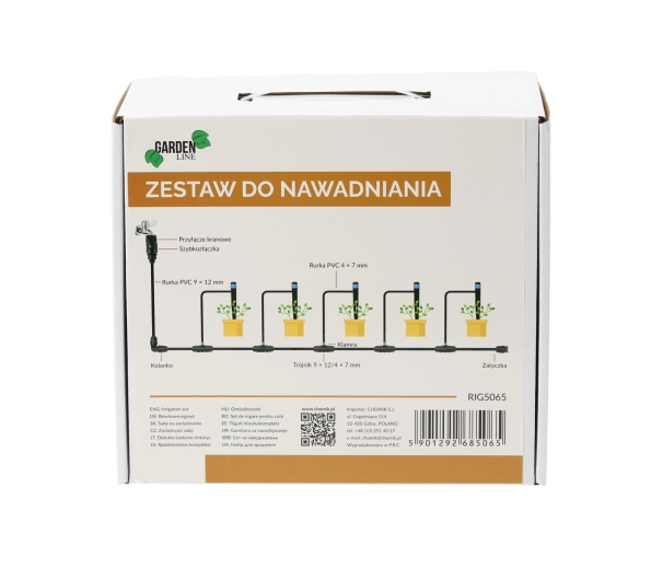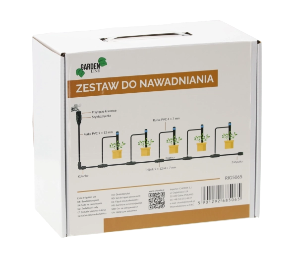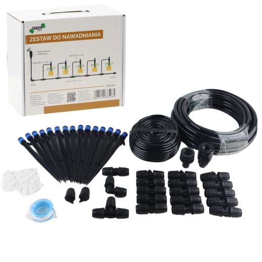 Acest set complet de irigare prin picurare este ideal pentru grădini, sere, straturi înălțate și jardiniere de balcon. Permite dozarea precisă a apei prin picurătoare reglabile direct la plante, minimizând evaporarea și risipa. Conectarea simplă la robinet și componentele modulare îți permit să creezi o instalație de irigare personalizată.
