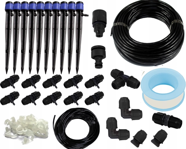 Acest set complet de irigare prin picurare oferă udare fiabilă și eficientă fără efort. Datorită emițătoarelor reglabile direcționați cantitatea exactă de apă către fiecare plantă și evitați risipa. Furtunașele flexibile și setul bogat de fitinguri vă permit să creați propriul layout de irigare exact după nevoile straturilor, jardinierelor și tunelurilor.