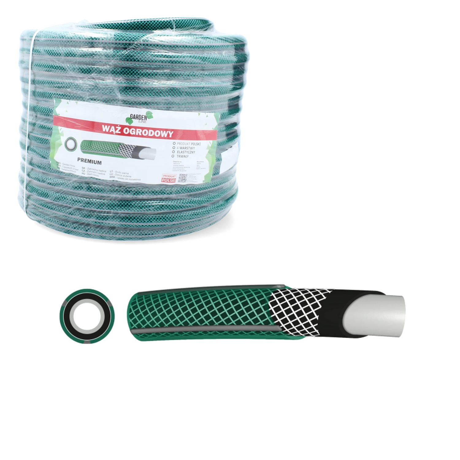 Furtun de grădină Premium, durabil și flexibil, cu lungimea de 30 m și diametrul de 1/2", pentru udare fiabilă pe tot parcursul anului. Datorită construcției în 4 straturi cu întăritură textilă oferă rezistență ridicată la deteriorare, presiune de lucru 8 bar și funcționare între -10 și +60 °C. Fabricat în Polonia.