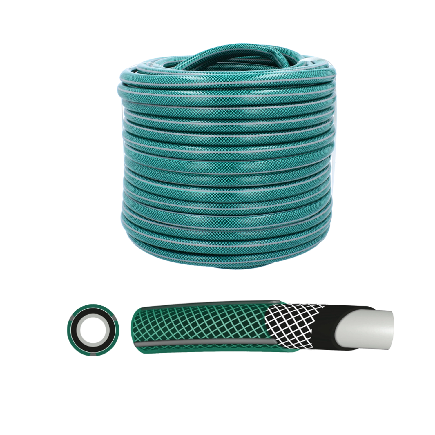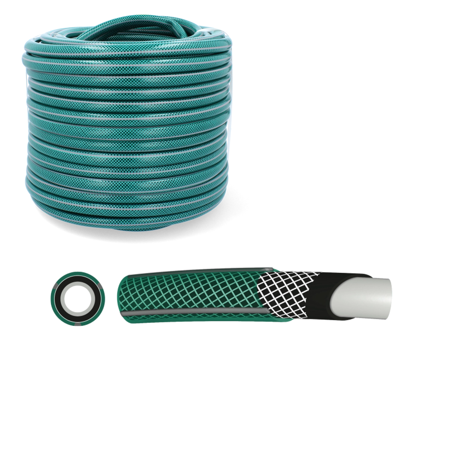 Un furtun de grădină fiabil, care își păstrează forma, nu se răsucește și face față condițiilor solicitante. Datorită execuției în 4 straturi cu plasă de ranforsare textilă, este deosebit de durabil, rezistent la deteriorări mecanice și radiații UV și asigură un debit lin de apă, fără întreruperi inutile.
