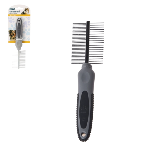 Pieptenele practic, cu două fețe, pentru câini și pisici, cu dimensiunile 19 × 5 cm, este un ajutor excelent pentru îngrijirea zilnică a blănii. Datorită celor două tipuri de dinți, asigură descurcarea eficientă, îndepărtarea ușoară a încâlcelilor și contribuie la un aspect sănătos și strălucitor. Mânerul ergonomic cu suprafață cauciucată garantează o prindere confortabilă și sigură în timpul pieptănării.