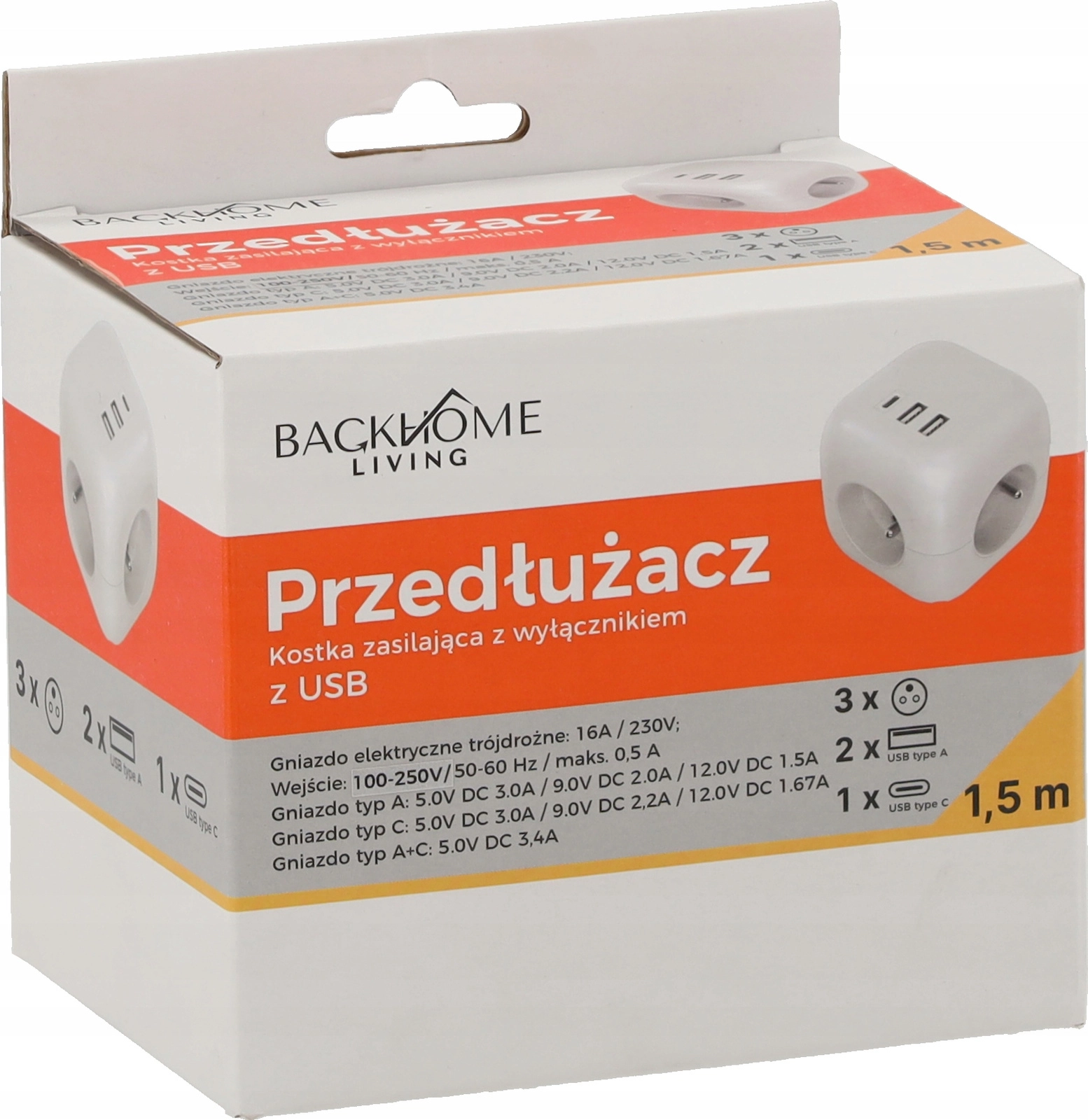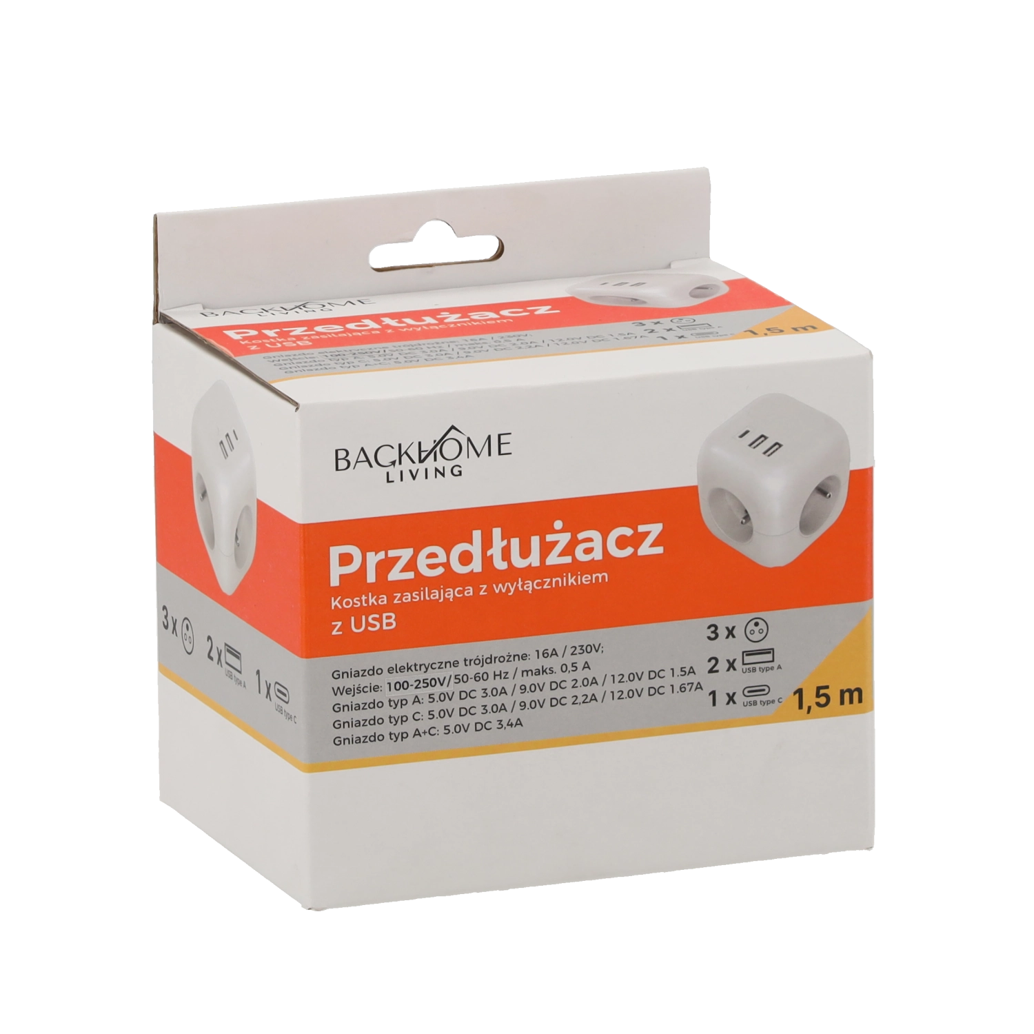 Cablu de 1,5 m practic, pentru amplasare ușoară pe blatul de lucru sau la masa TV. Cubul este ideal pentru acasă, birou și călătorii, atunci când aveți nevoie de mai multe prize și USB la îndemână fără dezordine inutilă.
