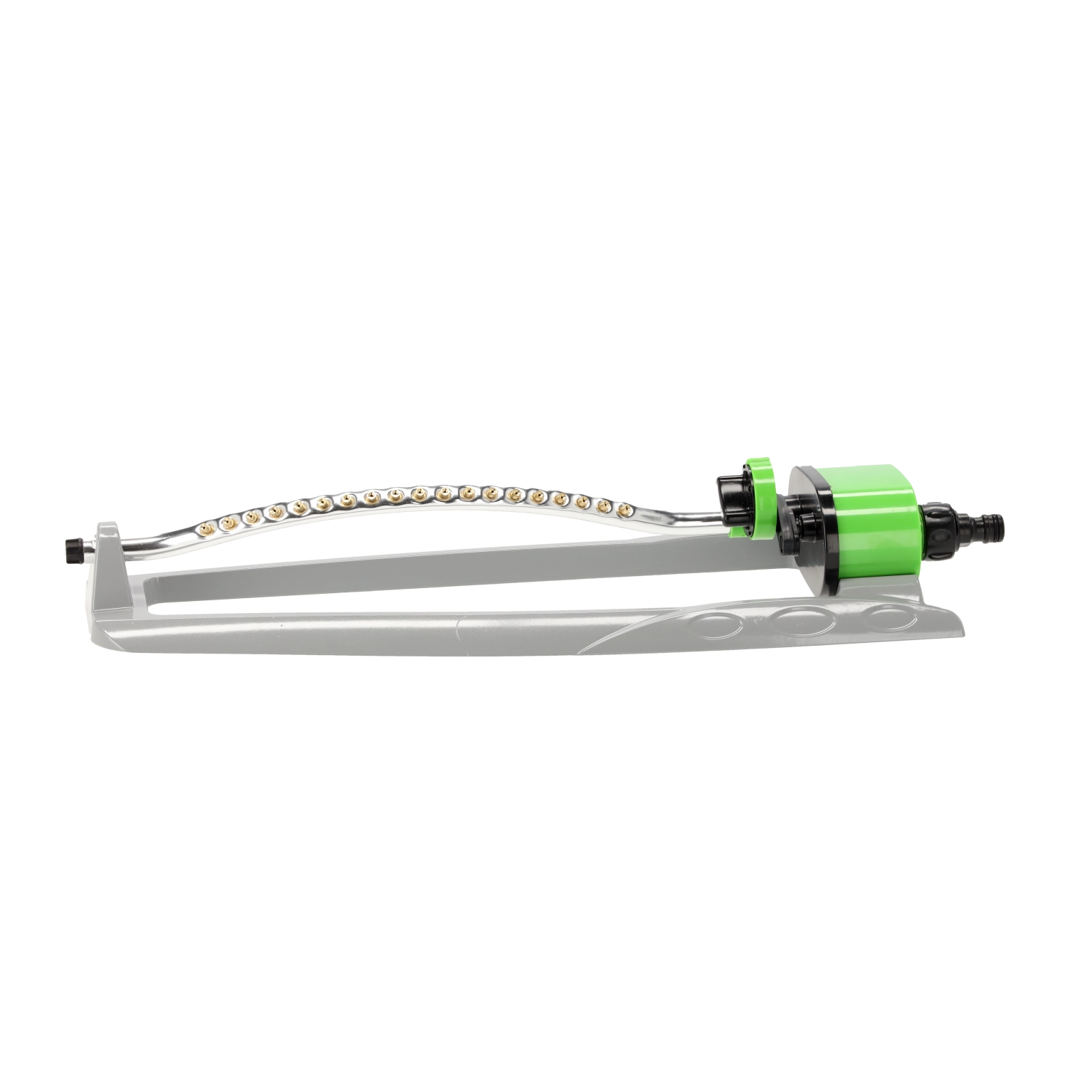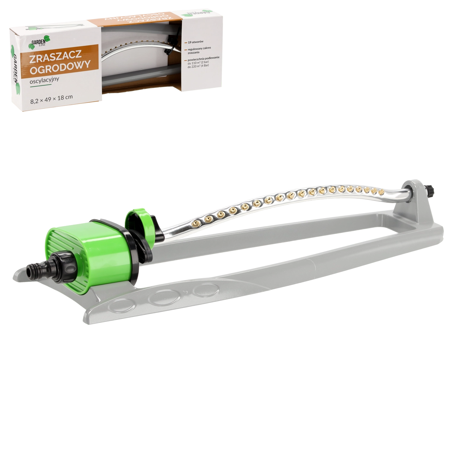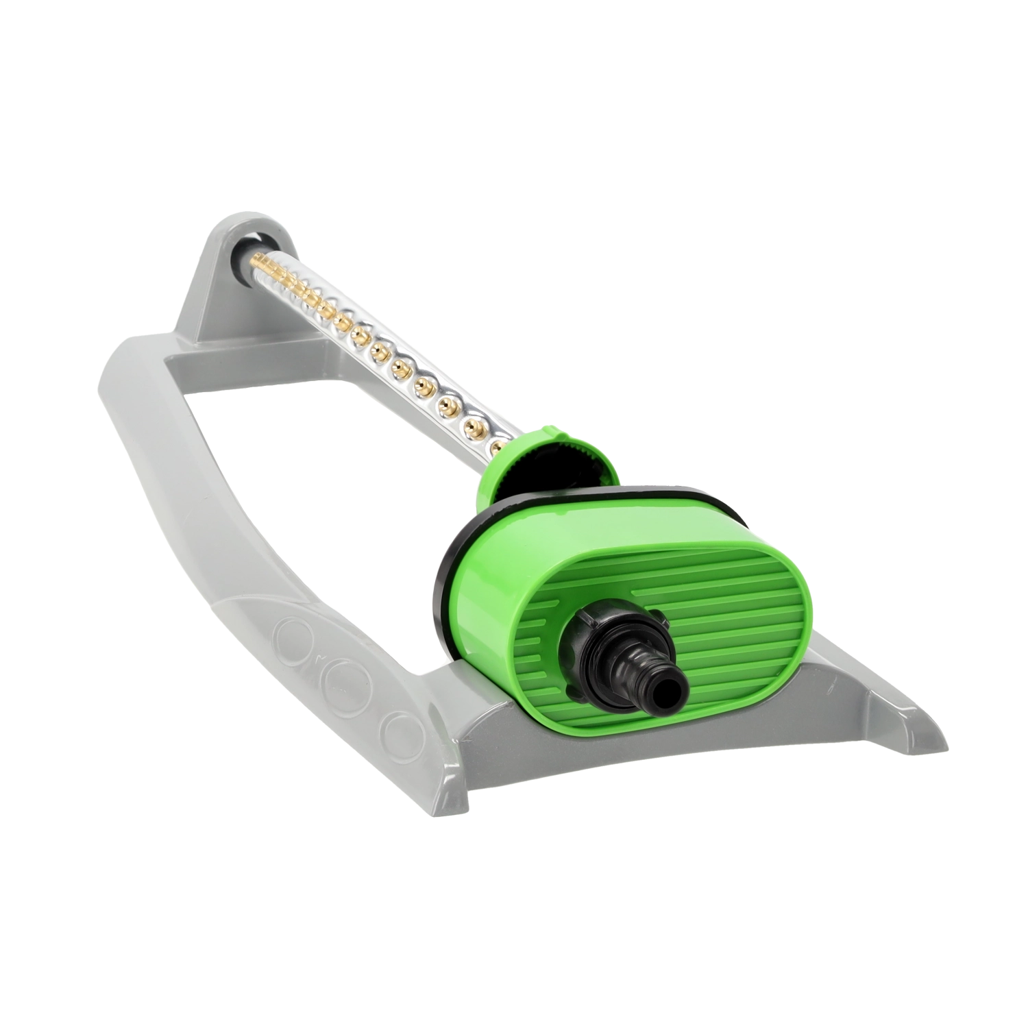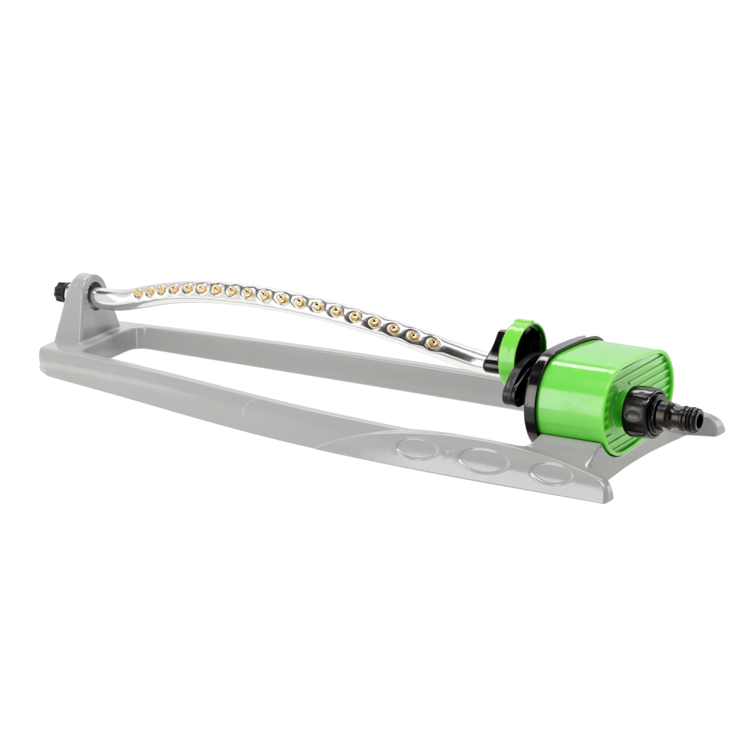 Aspersorul oscilant este un ajutor de încredere pentru udarea regulată și blândă a gazonului, straturilor și zonelor ornamentale. Construcția robustă din aluminiu și ABS garantează o durată de viață îndelungată, în timp ce cele 19 duze din alamă oferă o ploaie fină și uniformă fără formarea bălților.