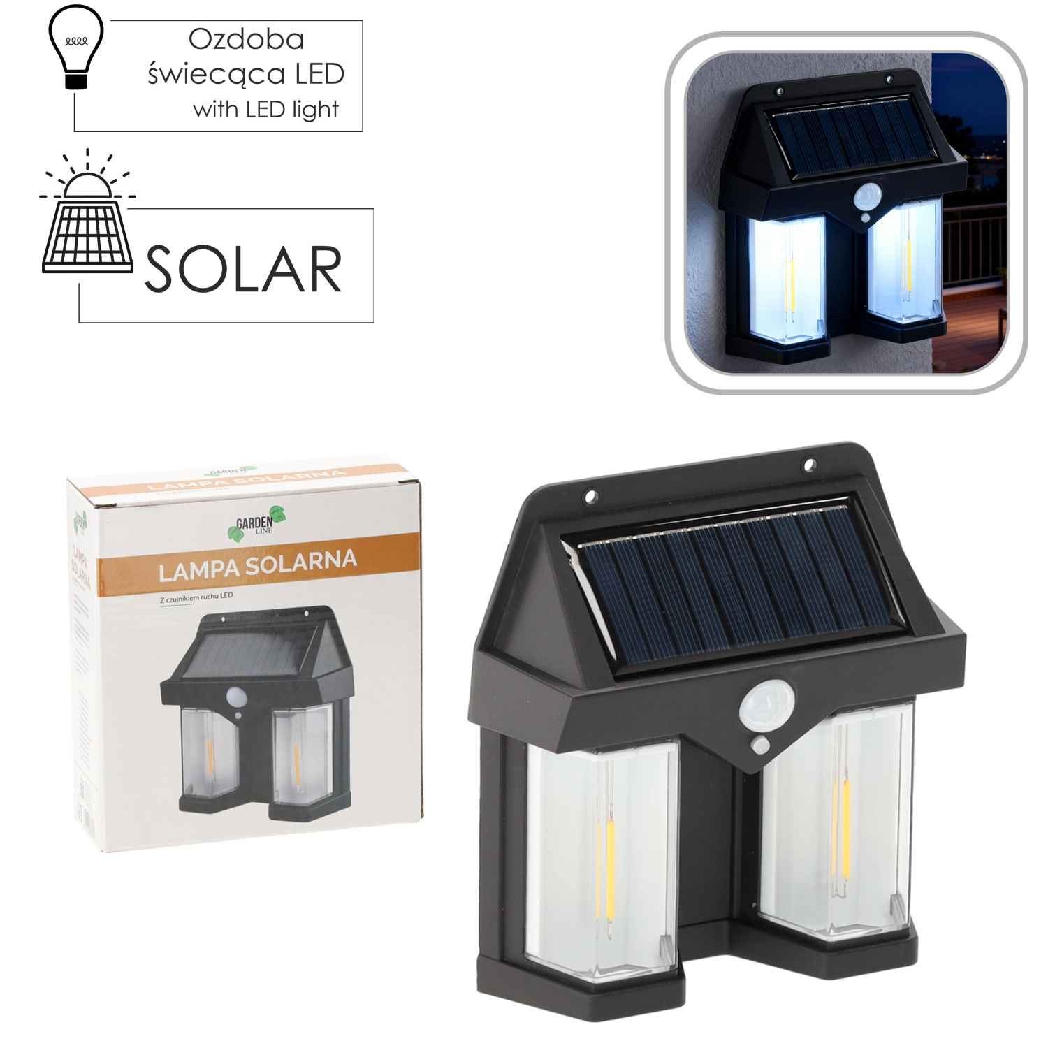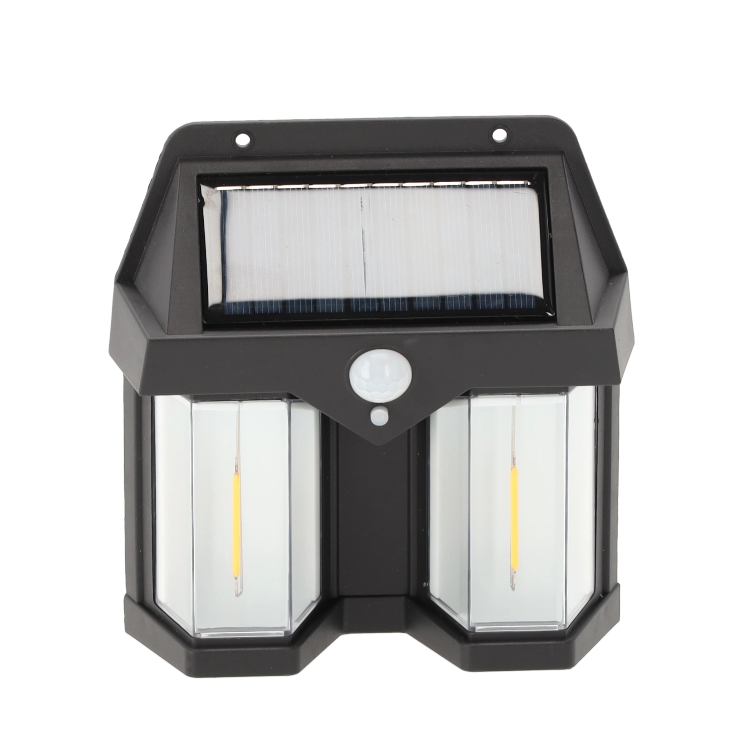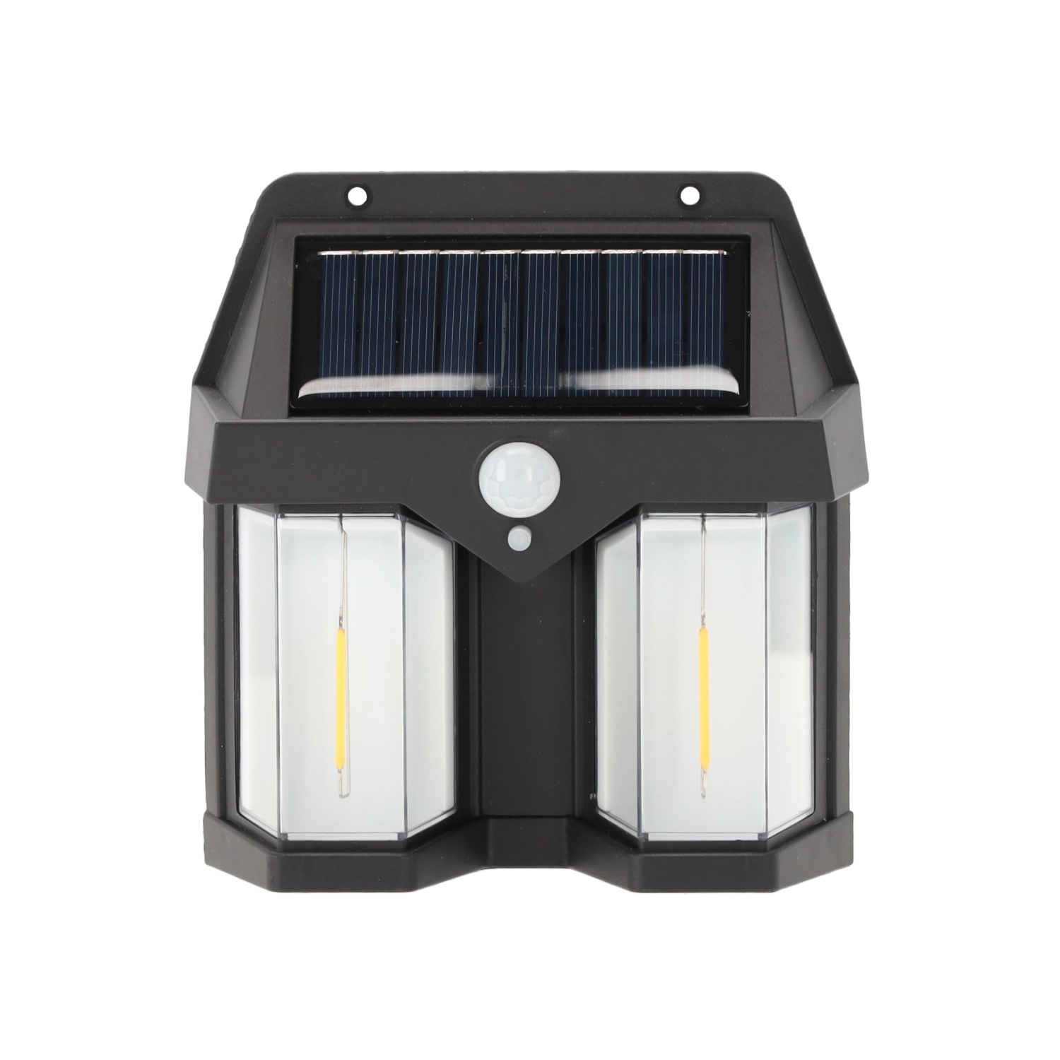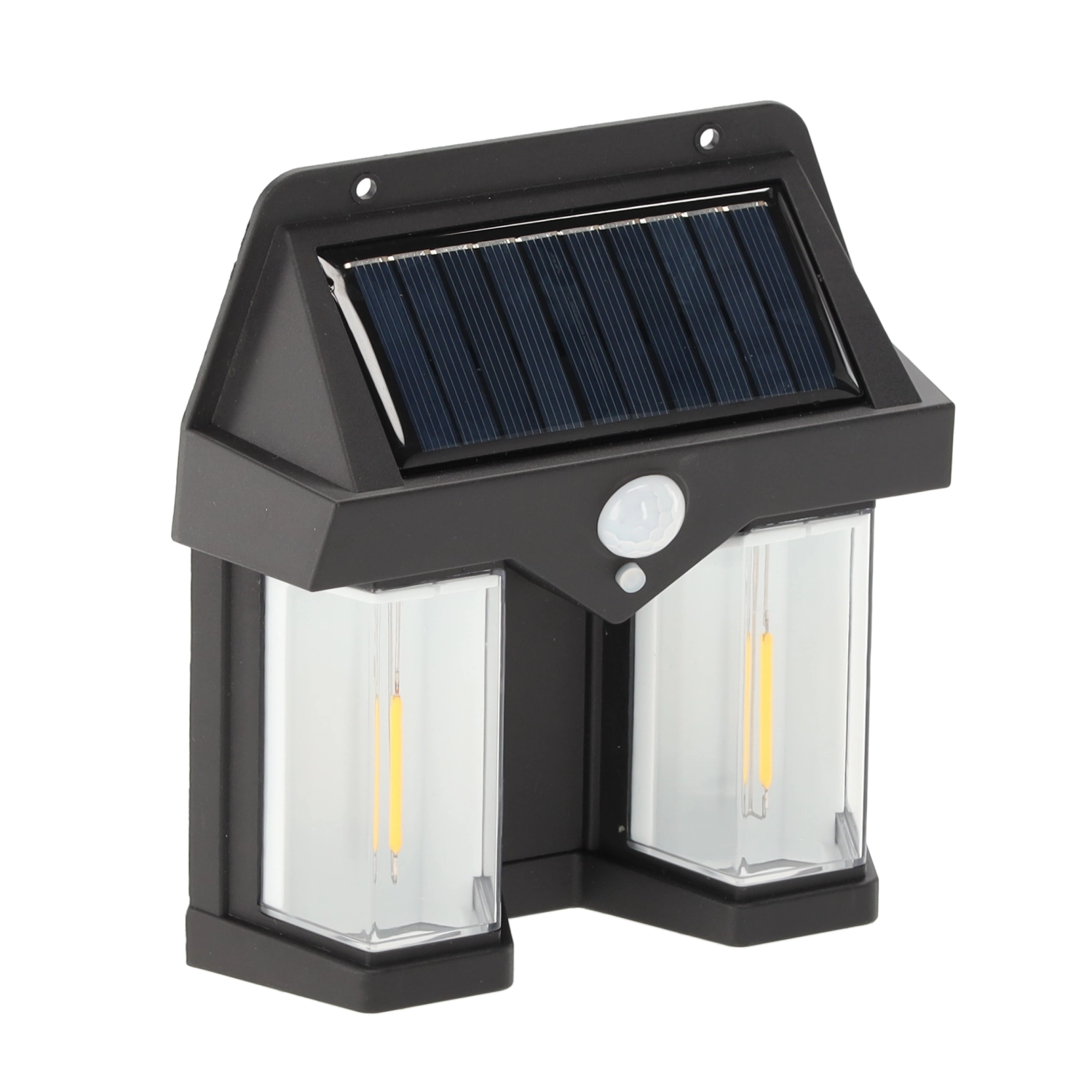 Lampa solară combină designul modern cu funcționalitatea practică. Panoul integrat de 1 W/5,5 V încarcă pe timp de zi bateria 18650 (3,7 V, 800 mAh), iar după lăsarea serii activează automat iluminarea. Senzorul de mișcare PIR cu rază de 8–10 m și câmpul larg de 270° asigură lumină exact când treceți prin apropiere.