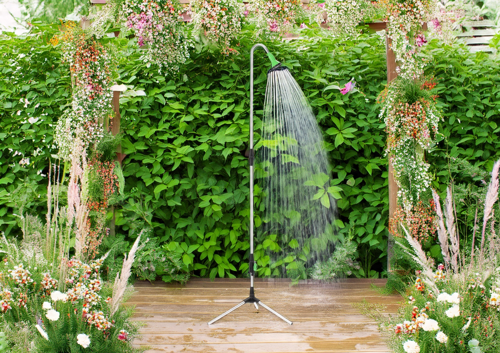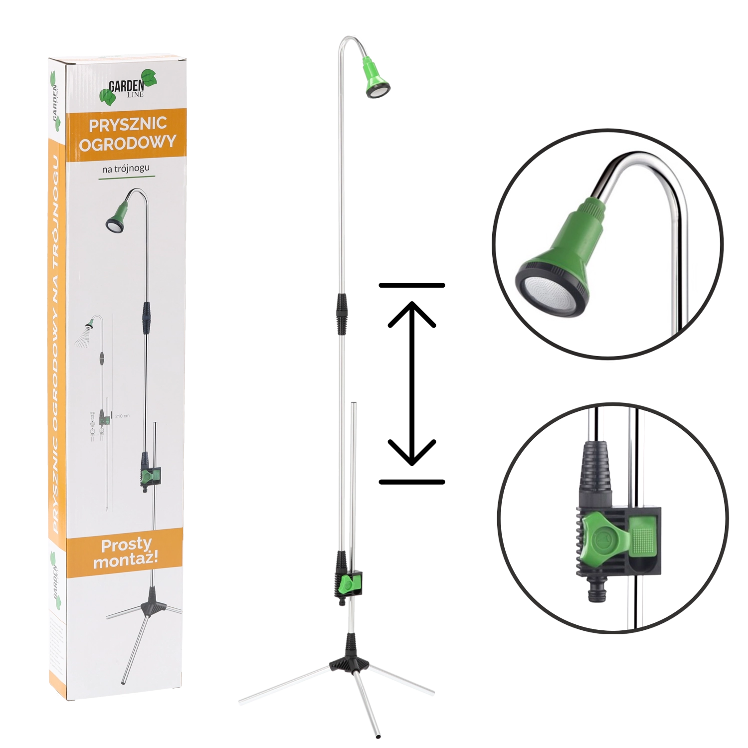 Reglarea lină a înălțimii și elementele de fixare comode asigură un duș confortabil atât pentru copii, cât și pentru adulți – ideal lângă piscină și în grădină.