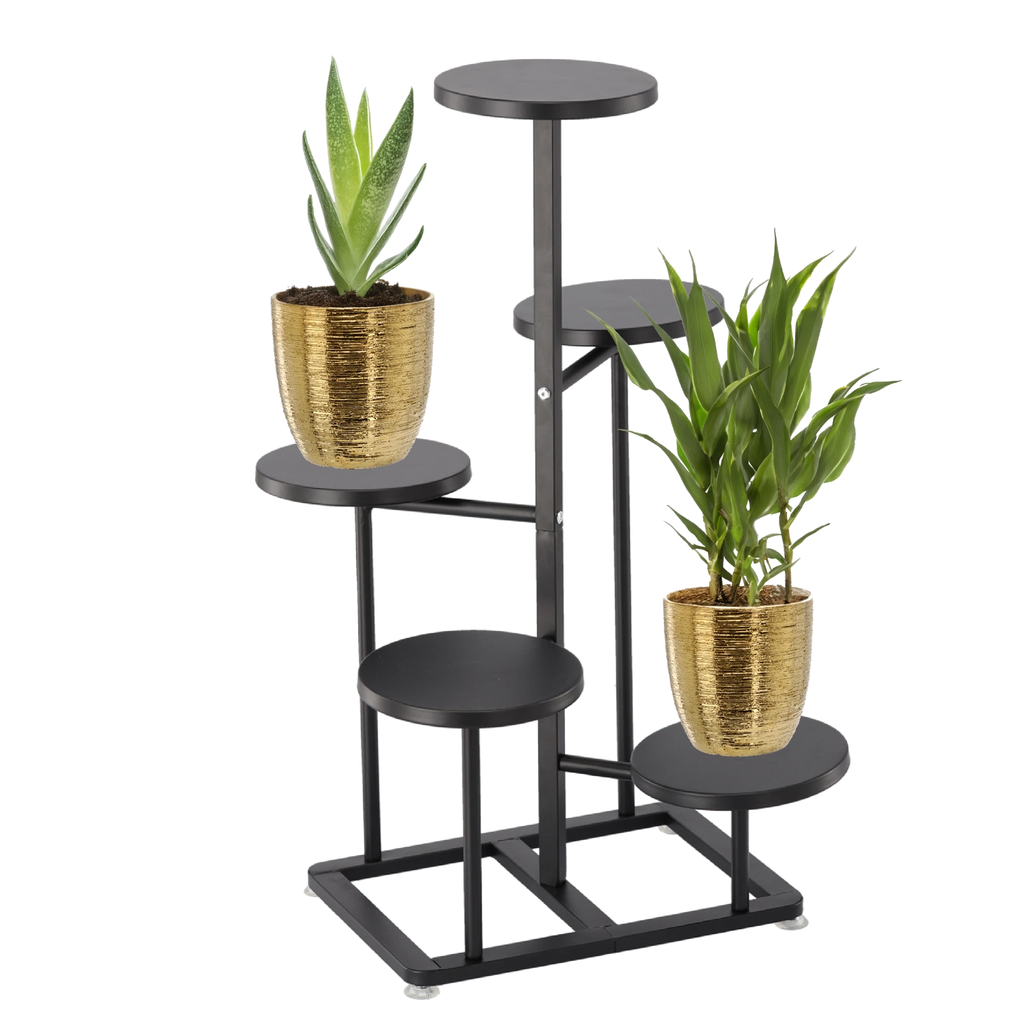 Acest suport metalic modern pentru flori este alegerea ideală pentru interior și exterior. Cu cele cinci niveluri, permite o organizare clară a plantelor și creează o compoziție verde atrăgătoare în living, pe balcon, terasă sau la birou. Finisajul negru evidențiază aspectul atemporal și se potrivește perfect stilului industrial sau minimalist.