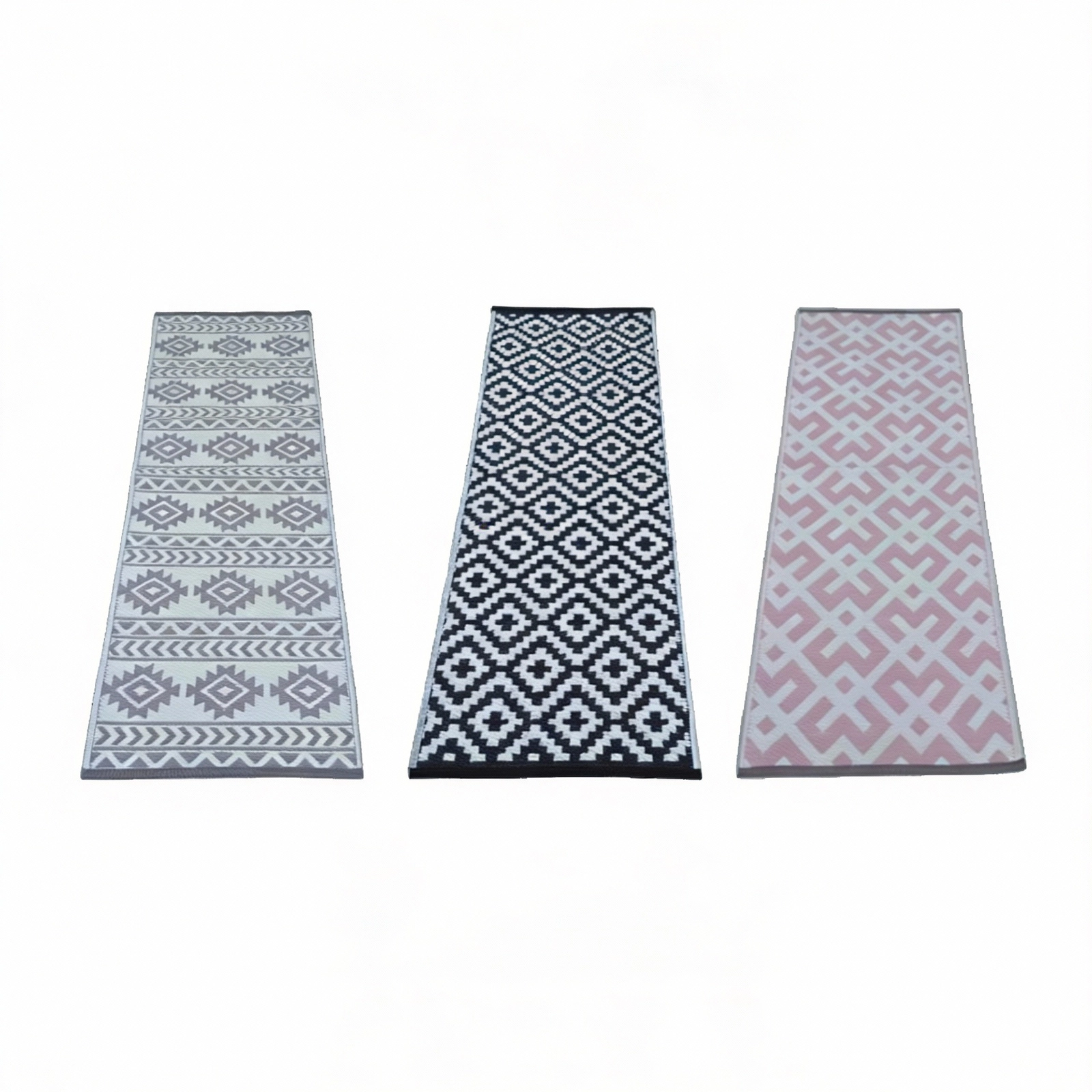 Alergătorul de exterior stilat, cu dimensiunea de 70 × 180 cm, transformă balconul sau terasa în doar câteva clipe. Datorită polipropilenei rezistente este ușor de curățat, rezistent la intemperii și oferă modele geometrice moderne care conferă spațiului un aspect proaspăt.