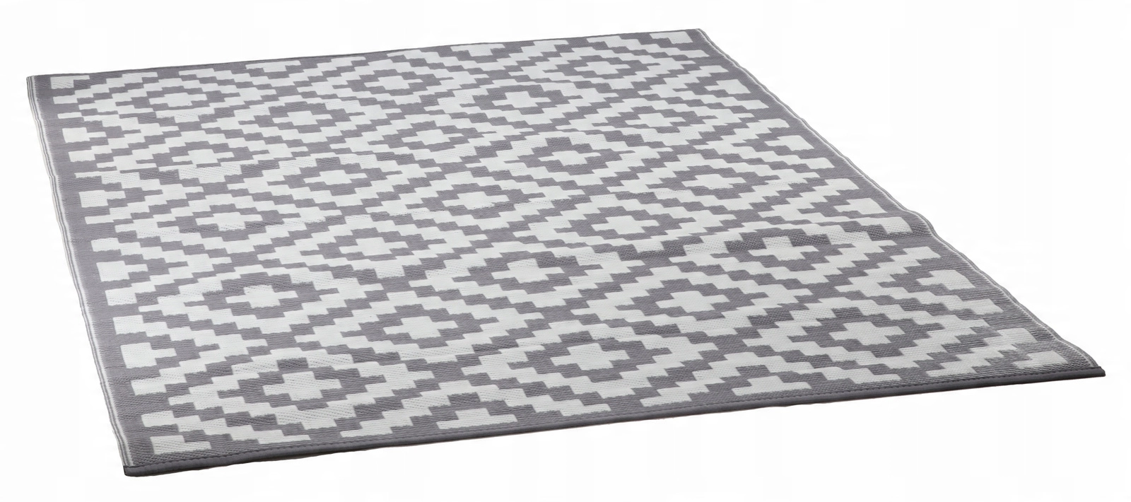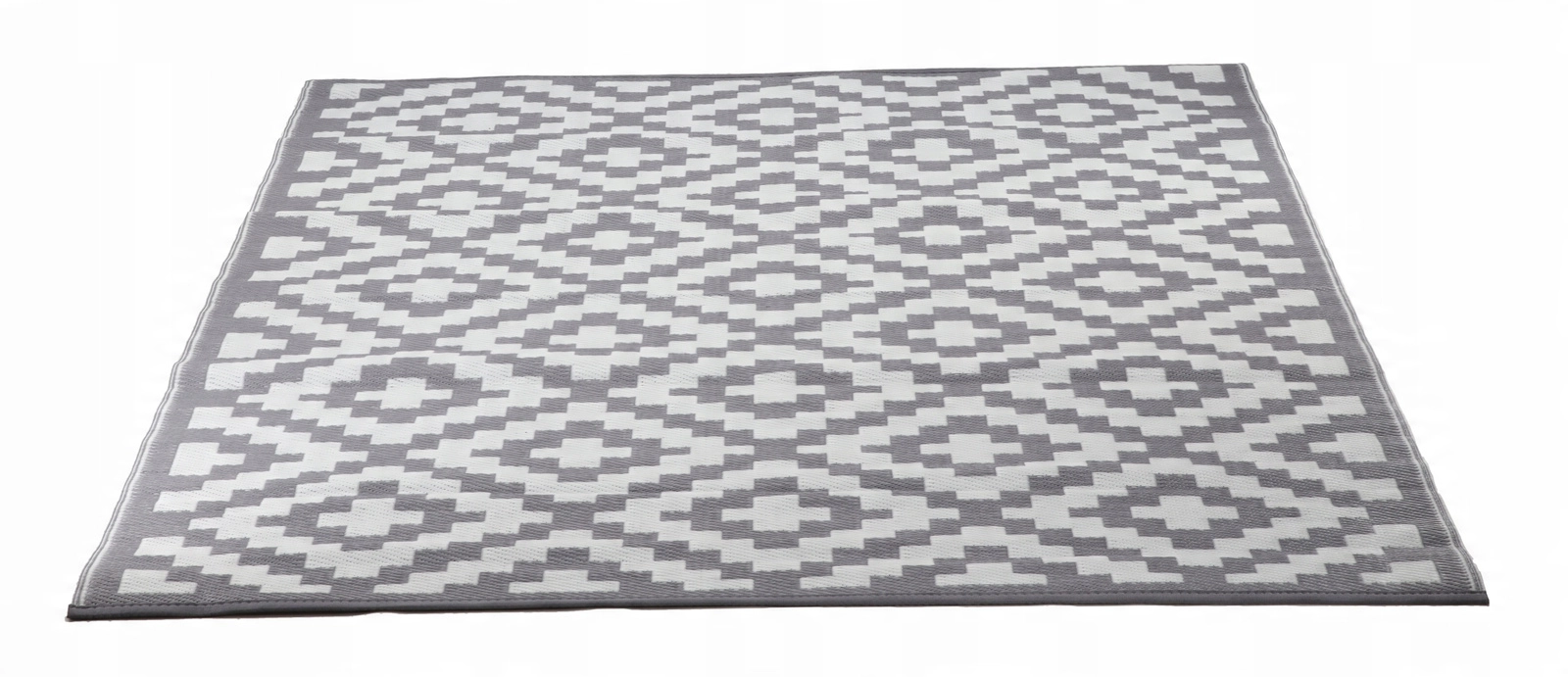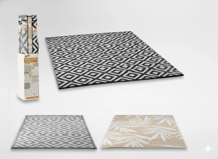 Covor de exterior stilat și practic, cu dimensiunea de 180 × 240 cm, pentru terase, balcoane și grădini. Din polipropilenă rezistentă, țesută plat, care este ușor de spălat, rezistentă la umiditate și intemperii și potrivită pentru zone cu trafic intens. Formatul mare delimitează confortabil zona de relaxare sub mobilier, iar mixul de modele moderne completează perfect orice stil.