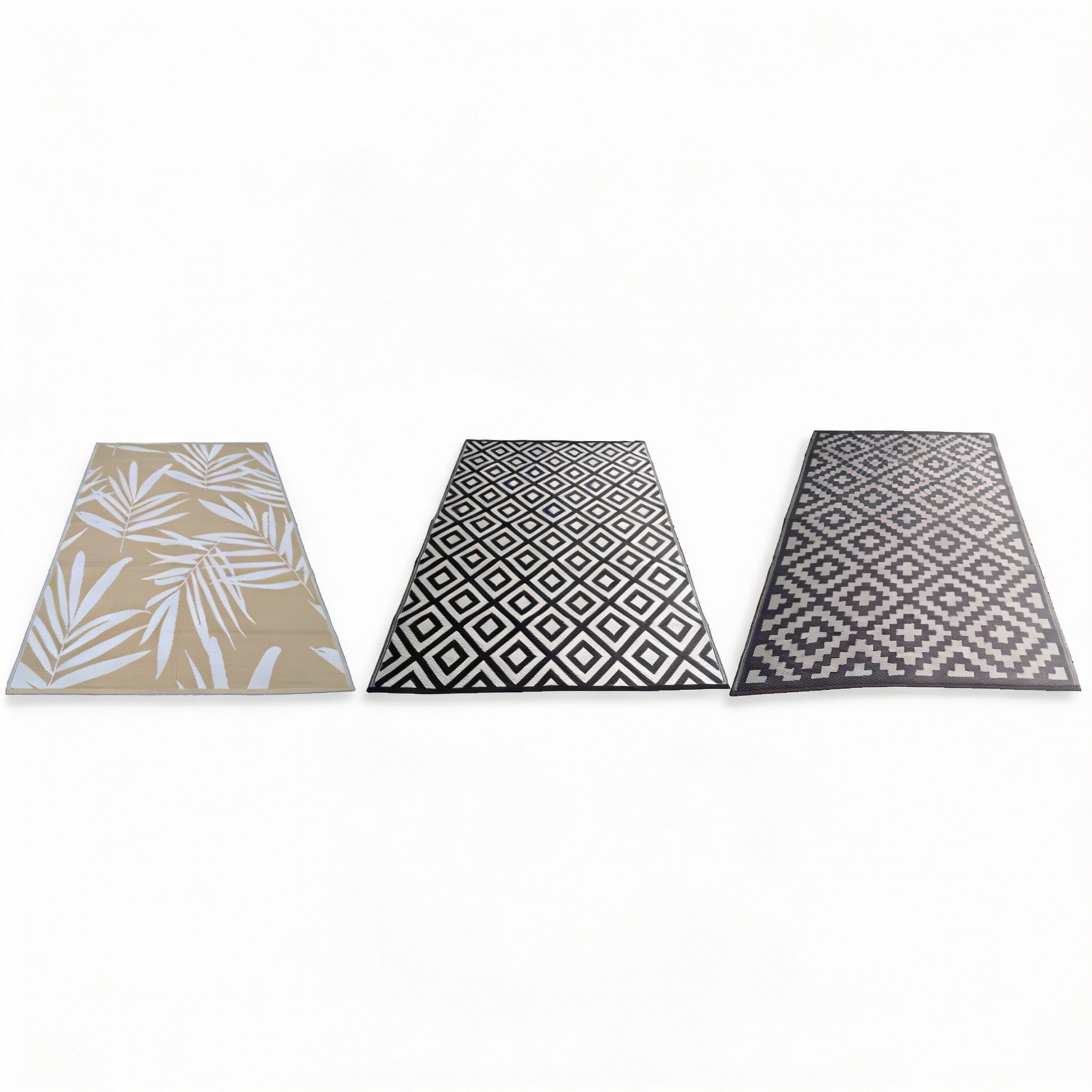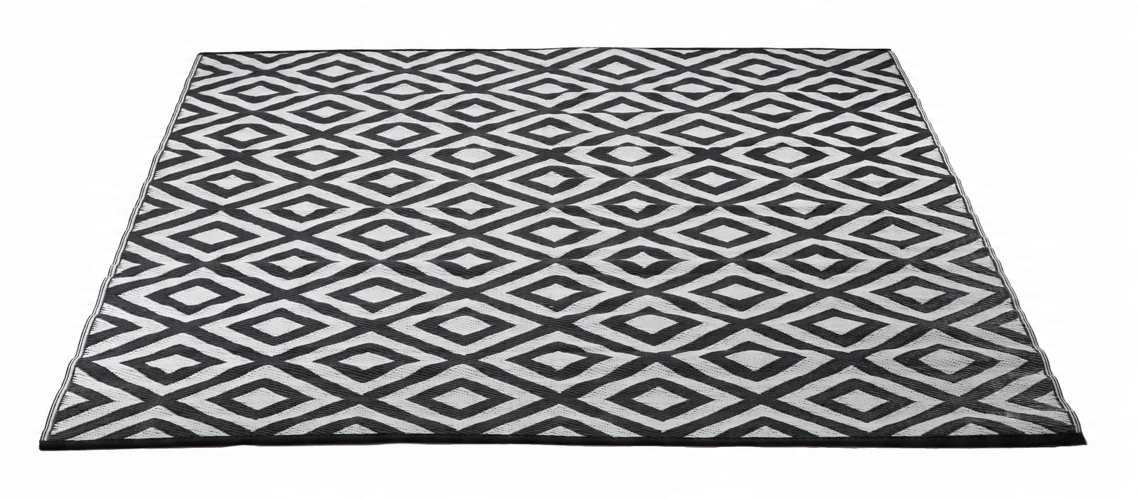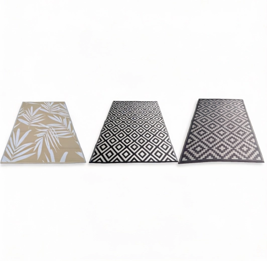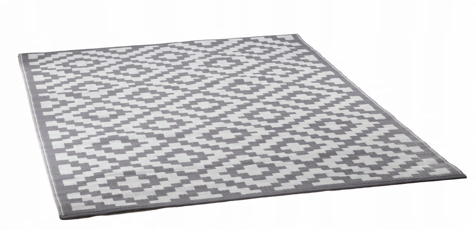 Covor de exterior stilat și practic, cu dimensiunea de 180 × 240 cm, pentru terase, balcoane și grădini. Din polipropilenă rezistentă, țesută plat, care este ușor de spălat, rezistentă la umiditate și intemperii și potrivită pentru zone cu trafic intens. Formatul mare delimitează confortabil zona de relaxare sub mobilier, iar mixul de modele moderne completează perfect orice stil.