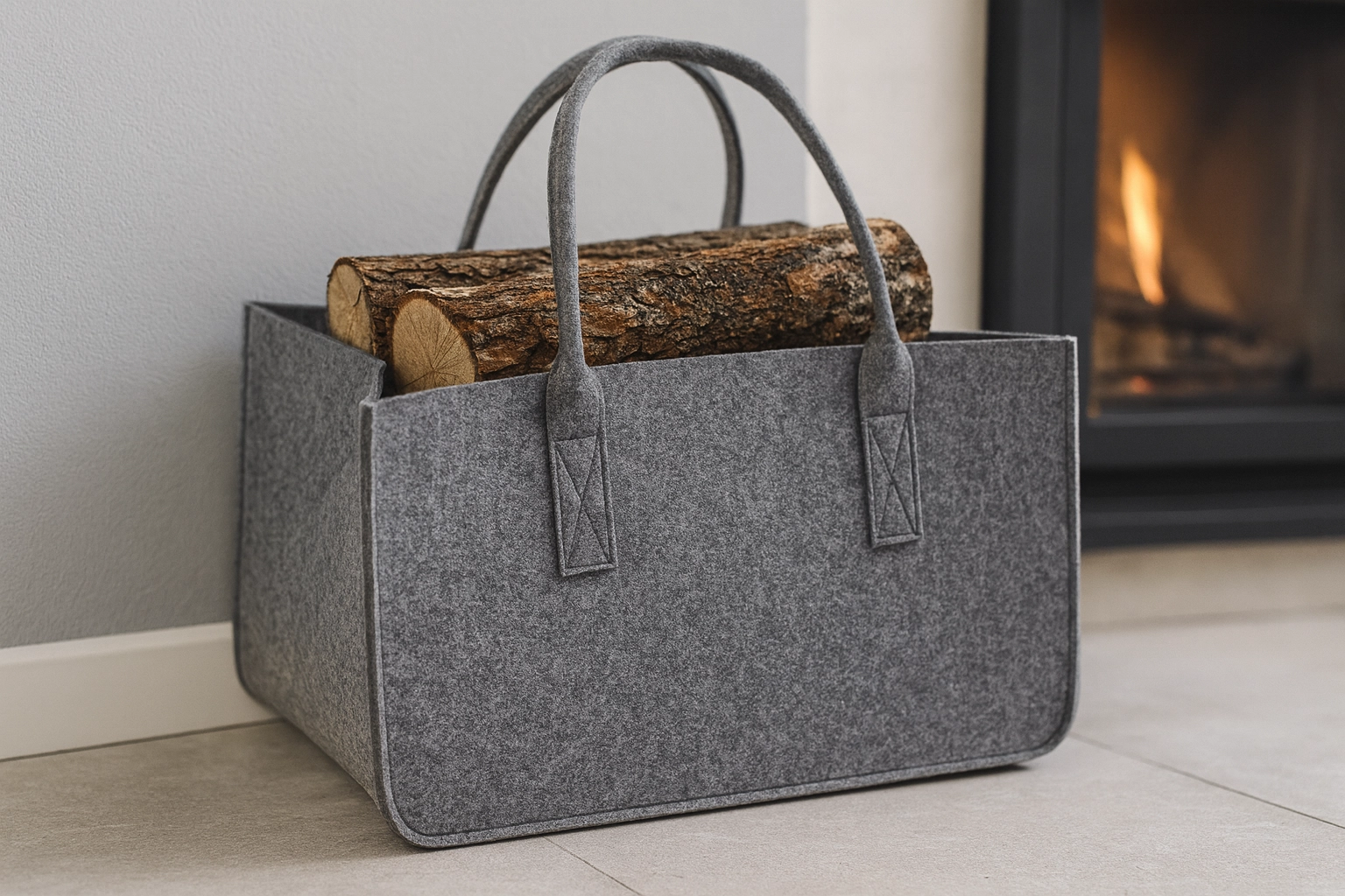 Geantă practică și elegantă din fetru, cu dimensiunile 50 × 27 × 34 cm, ideală pentru utilizare zilnică acasă și în mașină. Excelentă pentru lemne pentru șemineu, cumpărături, echipament de plajă și picnic. Datorită construcției solide și mânerelelor rezistente, transportă confortabil și încărcături mai grele, rămânând totodată ușoară și ușor de purtat.