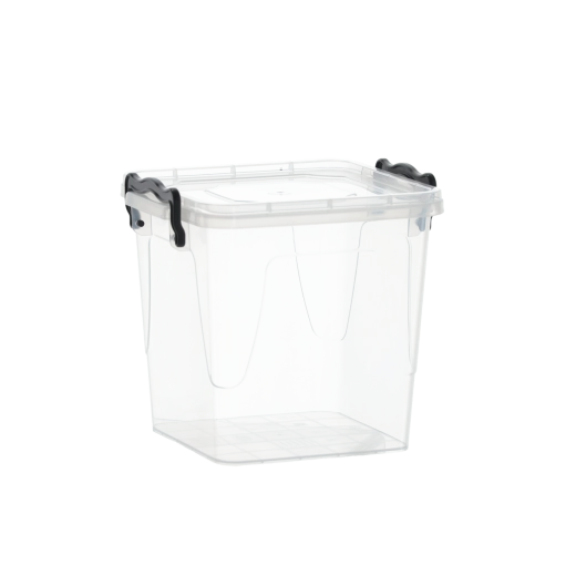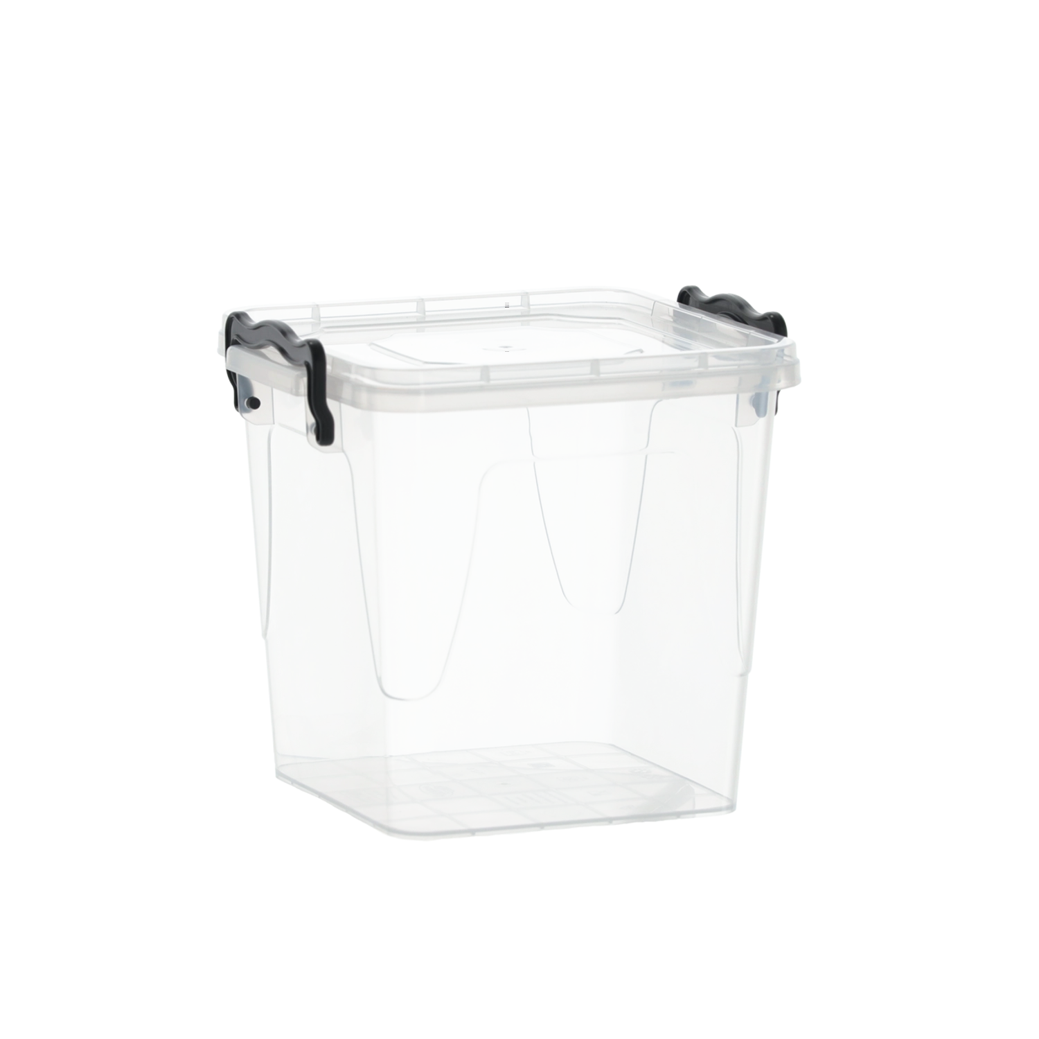 Cutia de depozitare pătrată Multi Box, cu volum de 3,7 litri, este o alegere excelentă pentru bucătărie, cămară și baie. Pereții transparenți permit verificarea instantanee a conținutului, în timp ce două cleme robuste asigură o etanșare fiabilă pentru o igienă sporită și o prospețime mai îndelungată a alimentelor.