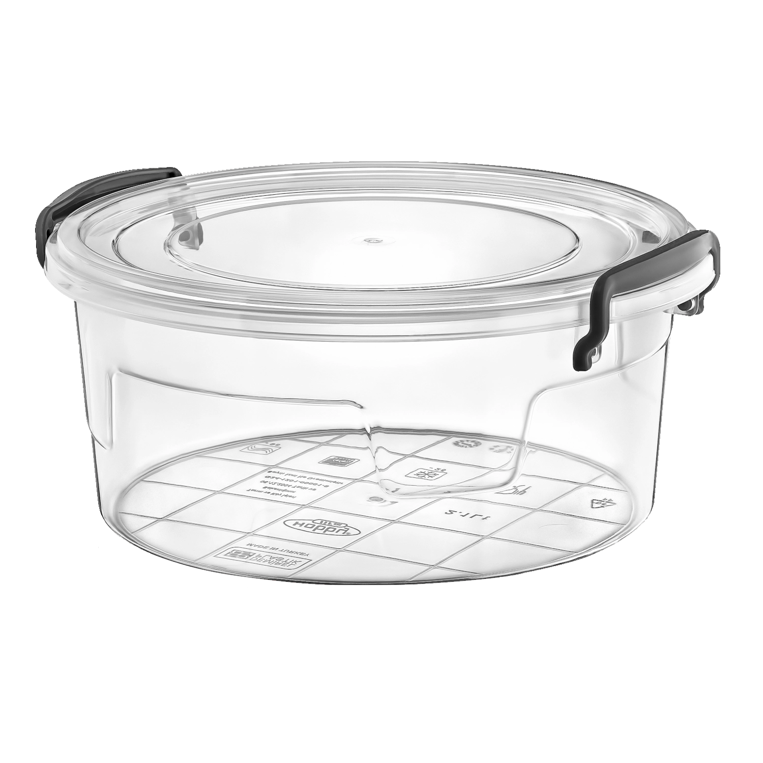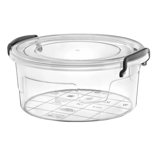 Cutia rotundă practică din plastic Multi Box, cu un volum de 2,1 l, este ideală pentru depozitarea zilnică a alimentelor. Datorită designului transparent, puteți verifica ușor conținutul fără a deschide. Capacul etanș cu două cleme asigură închidere ermetică, menține prospețimea și previne răspândirea mirosurilor. Cutia este potrivită pentru cuptorul cu microunde, congelator și mașina de spălat vase, fiind extrem de practică în orice bucătărie.