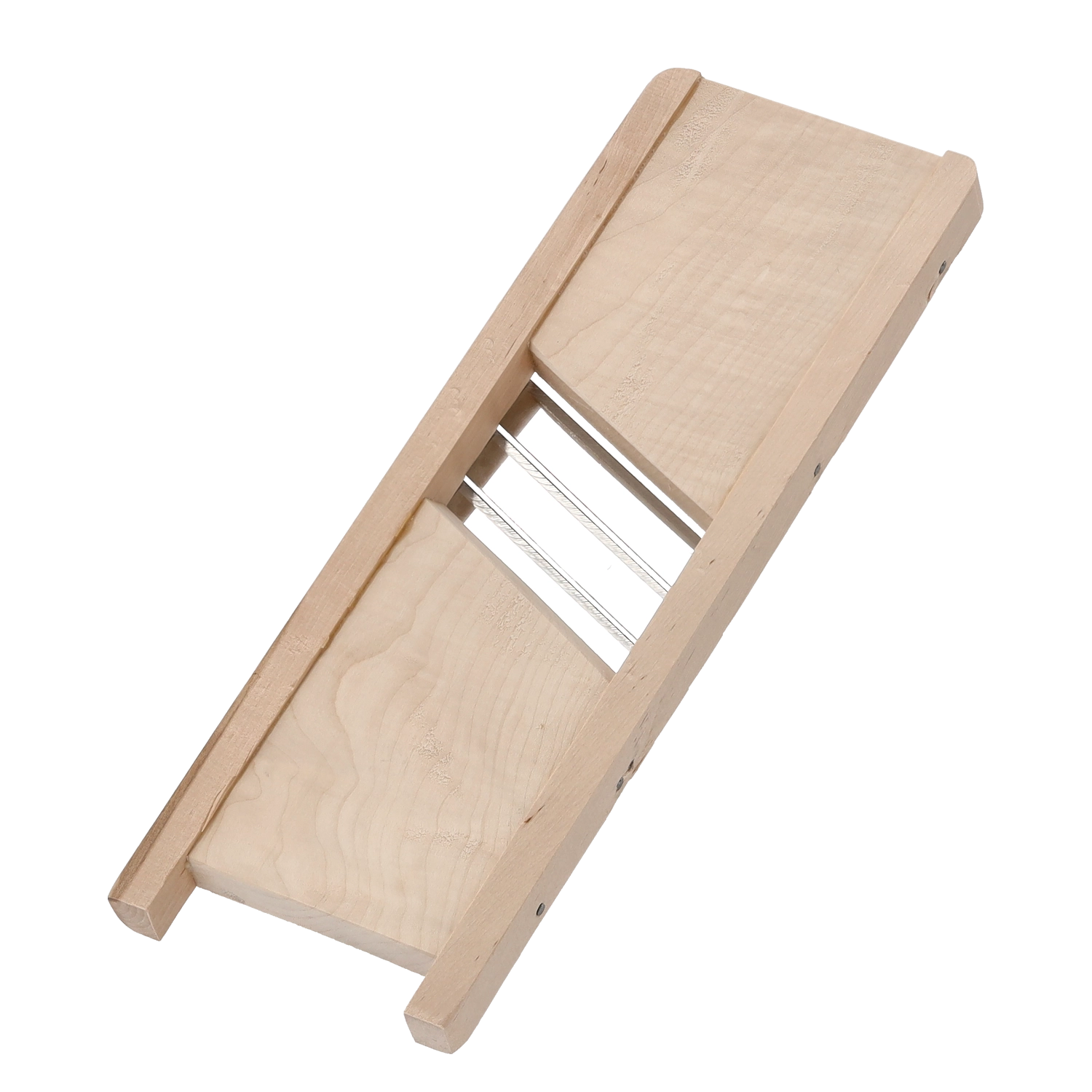 Rama robustă din lemn asigură stabilitate în timpul utilizării, șinele laterale ghidează ingredientele pe traseul corect, iar lamele din inox oferă durată de viață îndelungată și o tăietură curată. O alegere excelentă pentru utilizare zilnică în bucătărie.
