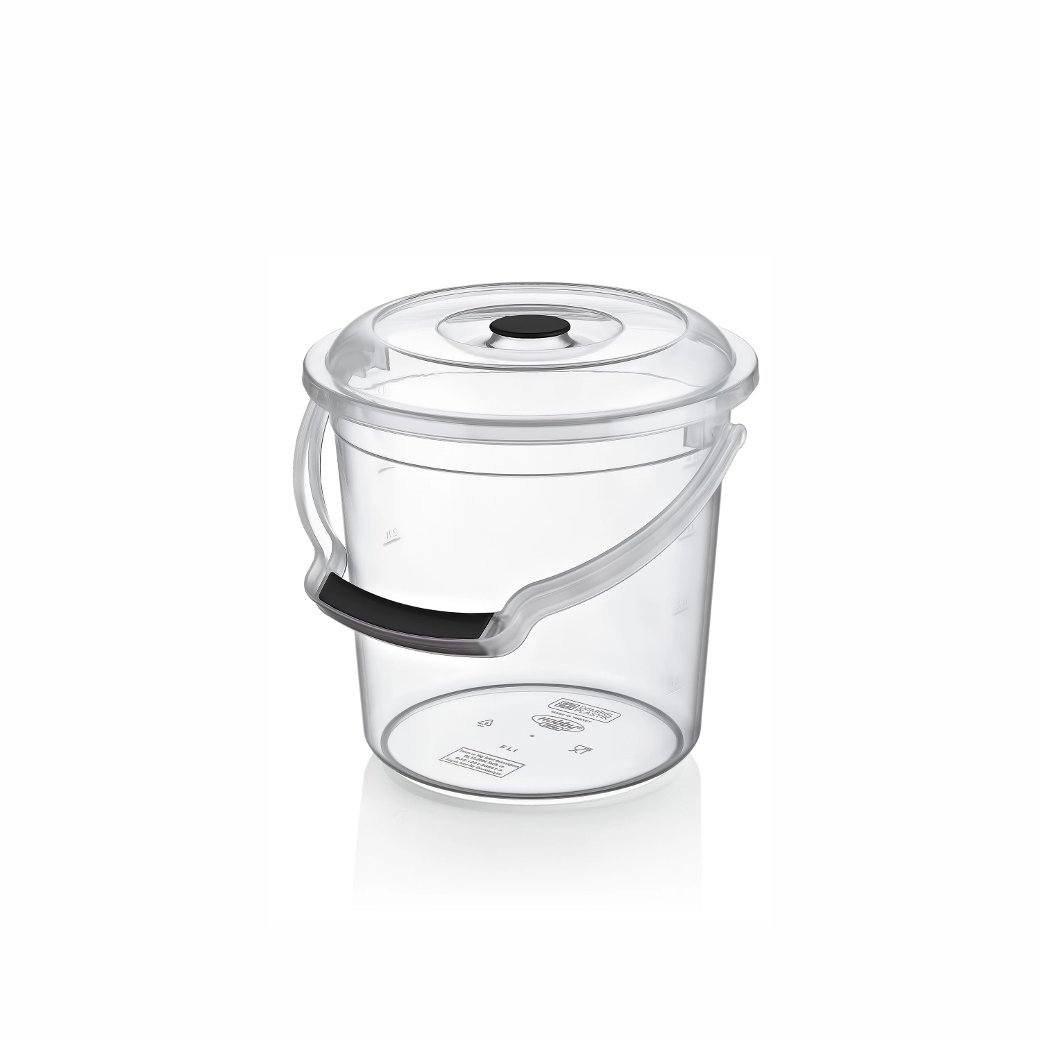 Găleata transparentă practică, cu volum de 5 litri, este ideală pentru casă, grădină și atelier. Datorită materialului transparent aveți vizibilitate instantanee a conținutului, în timp ce capacul solid asigură închidere sigură și permite stivuire. Plasticul rezistent se curăță ușor, este potrivit pentru contact cu alimentele și suportă temperaturi între -20 °C și +100 °C.