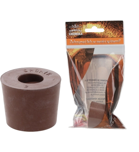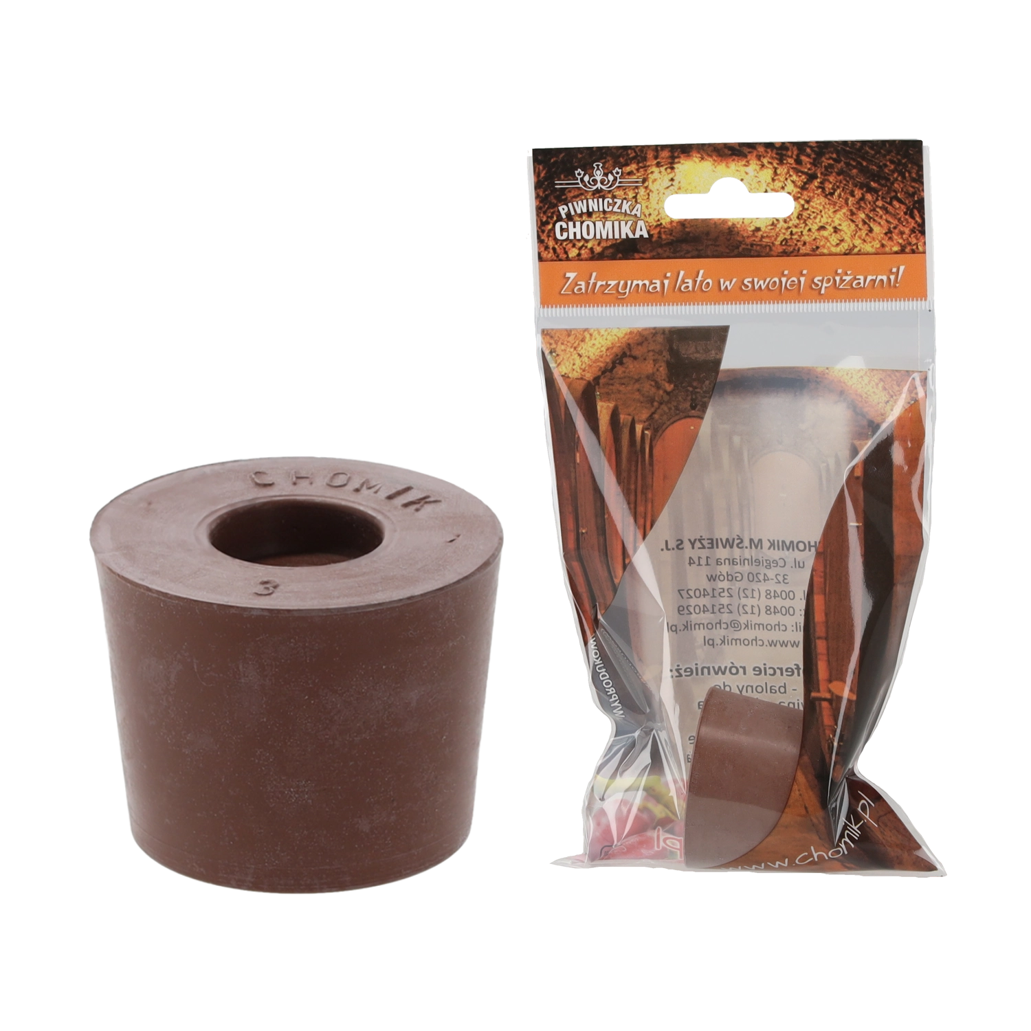 Dopul de cauciuc nr. 3 este o soluție fiabilă pentru vinificatorii casnici și pentru toți cei care produc băuturi fermentate. Datorită dimensiunilor precise și construcției elastice, etanșează excelent și protejează conținutul recipientului de impurități și aer. Orificiul cu diametrul de 10 mm este pregătit pentru un dop de fermentare standard, care permite evacuarea controlată a CO₂ în timpul fermentației.