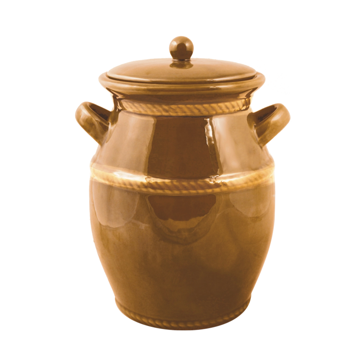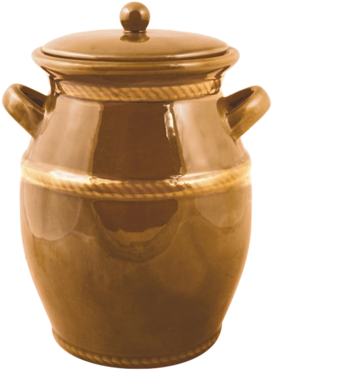 Acest vas de fermentare din ceramică de înaltă calitate, cu volum de 4 litri, este un ajutor de încredere pentru prepararea verzei murate, a castraveților și a altor alimente fermentate fără conservanți. Glazura de miere protejează suprafața, ușurează întreținerea și subliniază aspectul tradițional, potrivit pentru orice bucătărie.