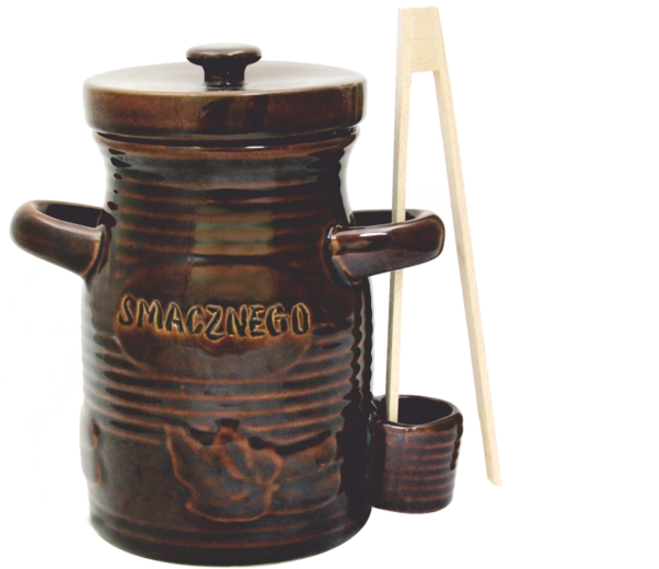 Recipient ceramic practic cu volum de 3,5 l pentru fermentare și depozitare acasă. Datorită ceramicii de calitate și suprafeței netoxice, rezistente la acizi, creează condiții optime pentru fermentare și păstrează gustul natural și calitatea alimentelor. Include buzunar comod pentru clești și clești din lemn de 22 cm pentru extragere igienică.