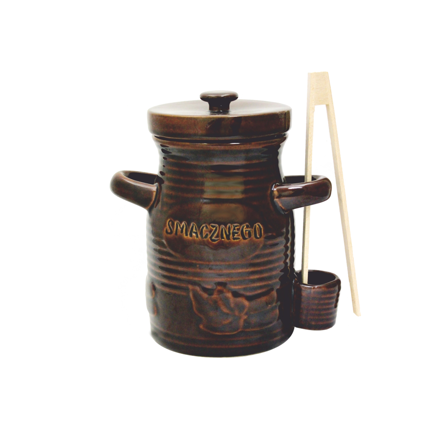 Designul bine gândit, cu buzunar lateral pentru clești, menține accesoriile mereu la îndemână și ușurează manipularea. Pachetul include clești din lemn cu lungimea de 22 cm, care permit extragerea igienică a alimentelor fără contactul mâinilor cu saramura.