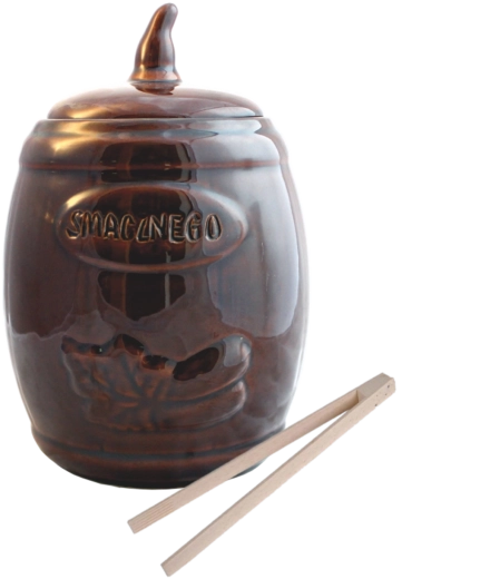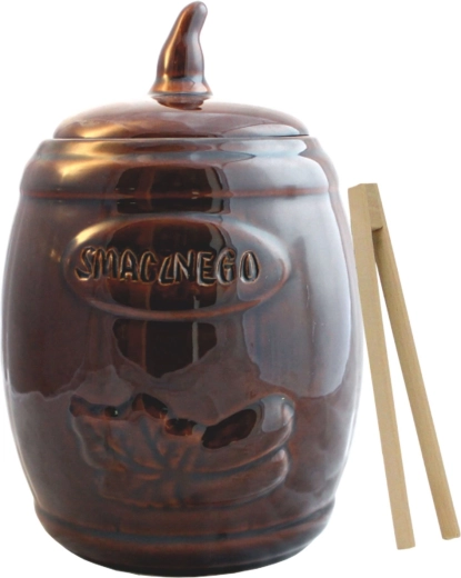 Butoi ceramic practic, cu volum de 3,5 l, ideal pentru fermentarea acasă și depozitarea pe termen lung a castraveților și verzei. Este realizat din gresie glazurată netoxică, rezistentă la acizi, care nu influențează gustul și asigură păstrarea sigură a alimentelor. Datorită proprietăților excelente de izolare, ajută la menținerea unei temperaturi stabile pentru o fermentație corectă. Pachetul include clești din lemn pentru extragere igienică.