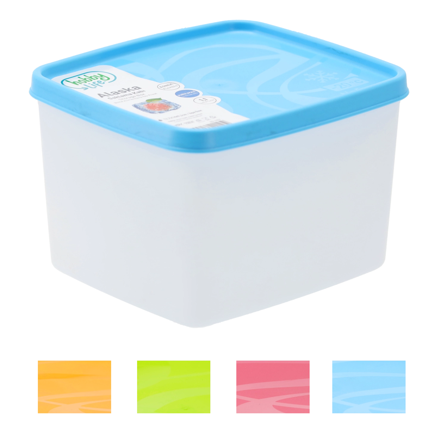Recipientul dreptunghiular No-Frost cu volum de 1,1 l este ideal pentru păstrarea îndelungată a alimentelor în congelator. Datorită tehnologiei No-Frost reduce formarea gheții, menține prospețimea și gustul alimentelor și economisește spațiu datorită dimensiunilor compacte. Este fabricat din plastic rezistent, fără BPA, este potrivit pentru cuptorul cu microunde (fără capac) și poate fi spălat în mașina de spălat vase.