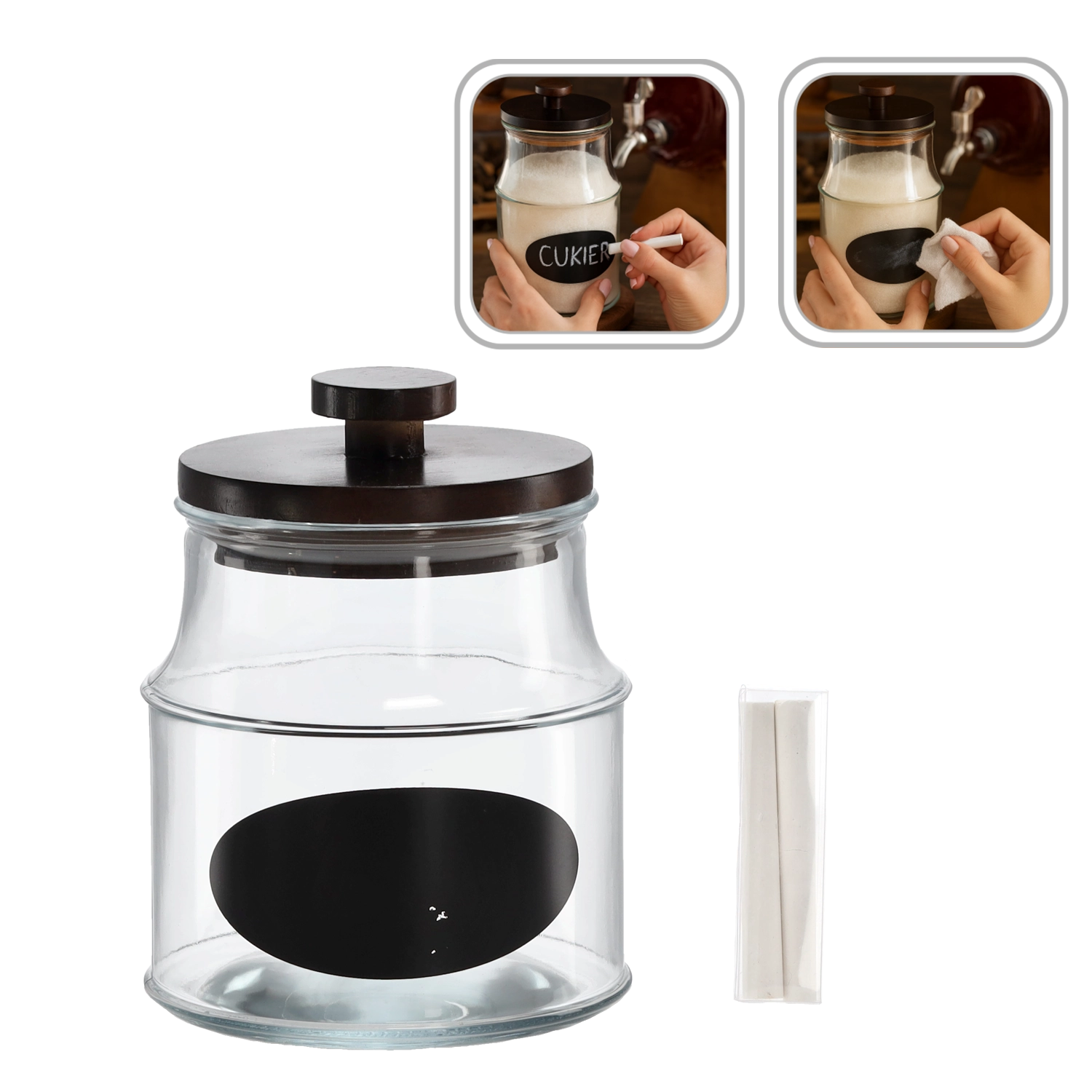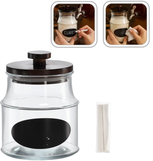 Borcanul de mare capacitate, 1,9 l, este soluția ideală pentru depozitarea de zi cu zi a alimentelor și a preparatelor de casă. Datorită capacului din lemn, conținutul rămâne proaspăt mai mult timp și protejat de umiditate și mirosuri. Eticheta inclusă, cu posibilitatea de a scrie, și creta vă ajută să mențineți ordinea și să recunoașteți rapid ce se află în interior.