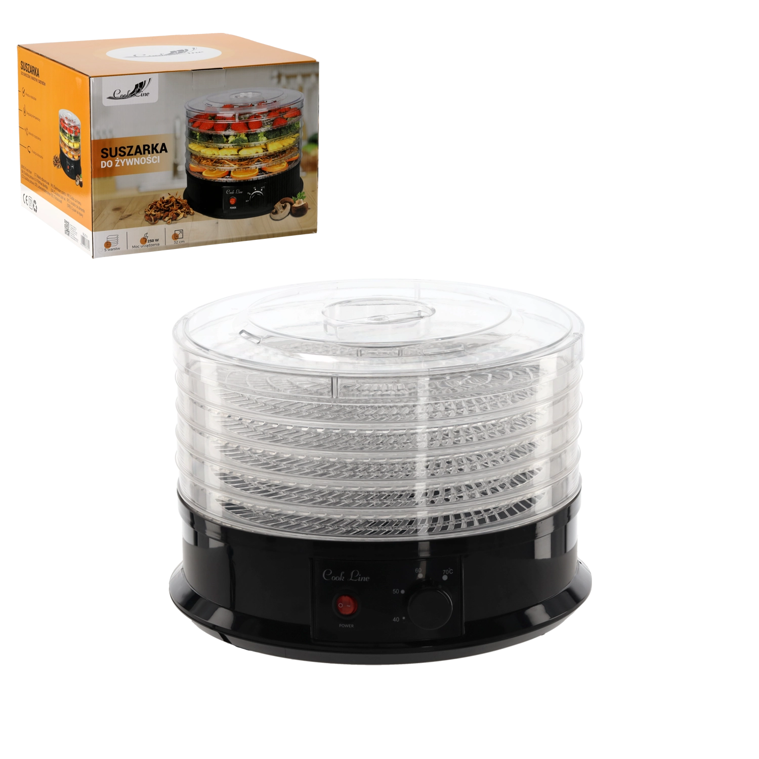 Uscătorul de alimente cu diametrul de 32 cm și puterea de 250 W este ideal pentru uscarea zilnică acasă. Datorită celor cinci tăvi încăpătoare (până la 1 kg fiecare) pregătești ușor chipsuri crocante din mere sau banane, felii de fructe, ierburi și ceaiuri sau carne uscată. Temperatura reglabilă 35–70 °C îți permite să adaptezi precis uscarea la fiecare ingredient.