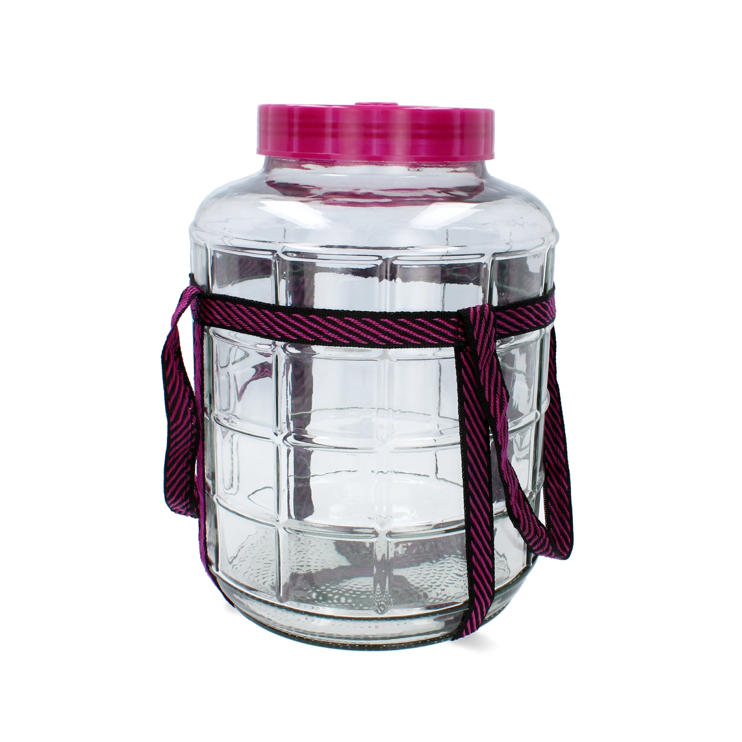Datorită curelei incluse, transportul recipientului voluminos este confortabil și sigur, iar sticla transparentă oferă control excelent asupra procesului de fermentare. Relieful stilat de pe suprafață transformă damigeana într-o piesă estetică, care arată bine chiar și pe blatul din bucătărie.