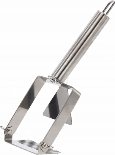 Ușurați-vă descăpăcirea fagurilor cu o furcă solidă și durabilă din oțel inoxidabil de calitate. Dinții ascuțiți îndepărtează sigur căpăcelele celulelor, în timp ce mânerul ergonomic oferă o priză sigură și confortabilă chiar și în timpul lucrului prelungit.