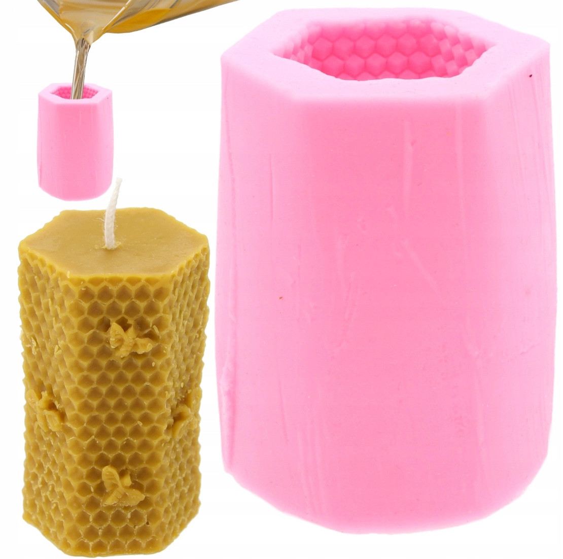 Această matriță de turnare din silicon, cu motiv de fagure și albină, îți permite să creezi cu ușurință lumânări decorative cu o suprafață texturată ce amintește de fagurele de albine. Datorită siliconului flexibil și antiaderent, lumânarea finită se demulează fără efort, iar matrița își păstrează forma pe termen lung.