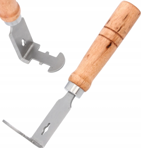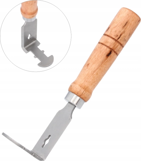 Muchia ușor ascuțită îndepărtează eficient impuritățile de pe pereți, corpuri și decupajele stupului fără a deteriora lemnul.
