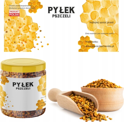 Aceste etichete autoadezive sunt destinate borcanelor sau ambalajelor cu polen de albine. Oferă suficient spațiu pentru informații esențiale, precum denumirea produsului, data expirării și, eventual, lotul. Datorită formatului clar, ajută la îmbunătățirea prezentării produsului și îi conferă un aspect profesionist.